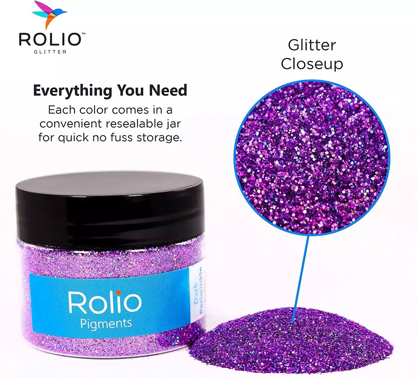 Rolio - 1 Jar Vibrant Holographic Glitter (Dark Periwinkle) - 1 oz