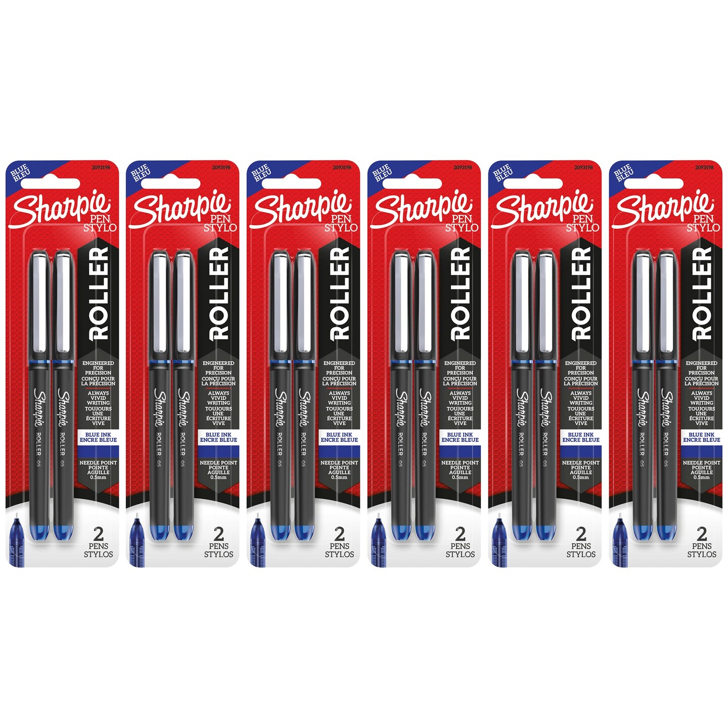 Rollerball Pen, Needle Point (0.5mm), Blue Ink, 2 Per Pack, 6 Packs
