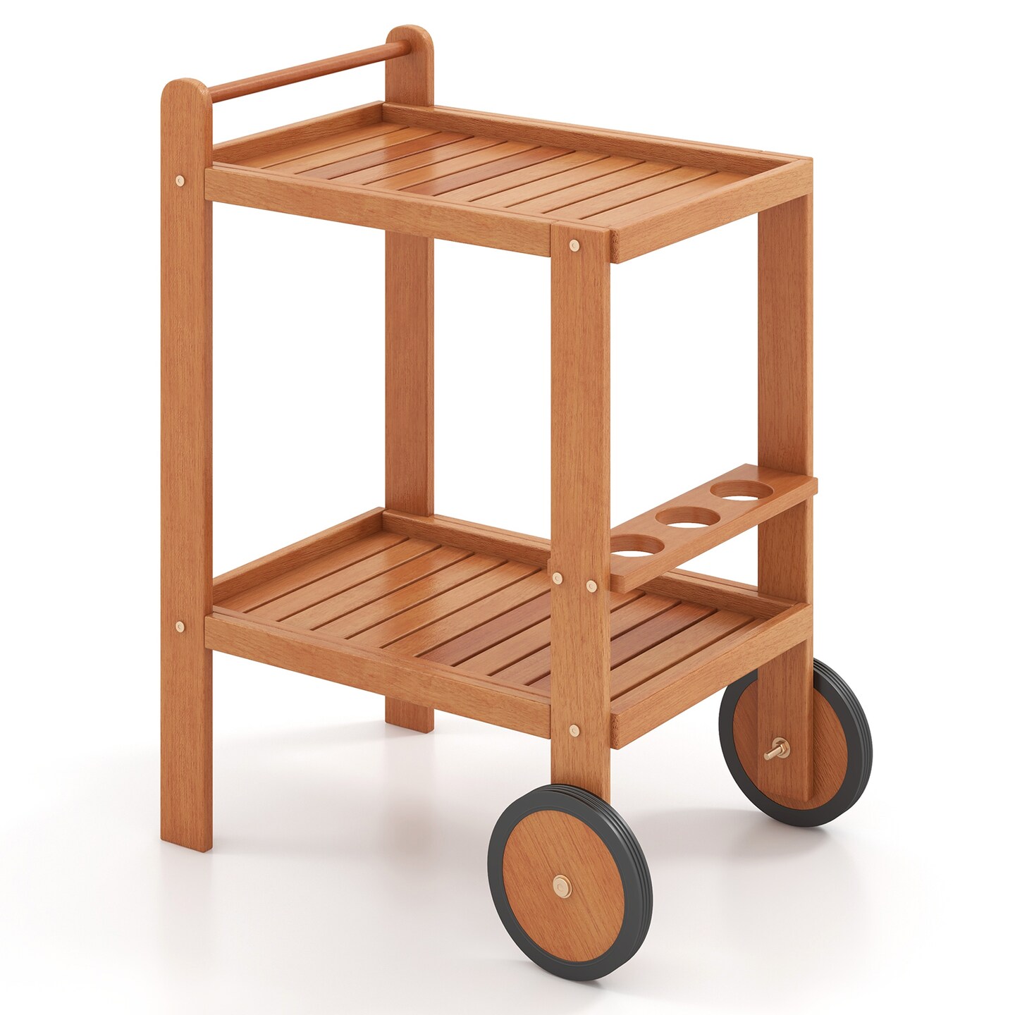 Rolling 2-Tier Serving Cart with Wine Bottle Holders and Durable Rubber Wheels - 27" x 20" x 35.5" (L x W x H)