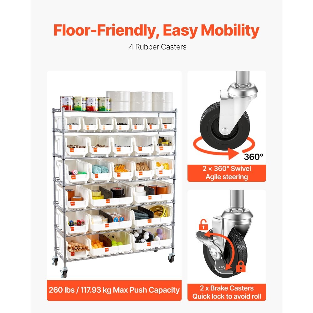 Rolling Bin Storage Rack with 24 Organizer Bins Steel Wire Shelf on Wheels