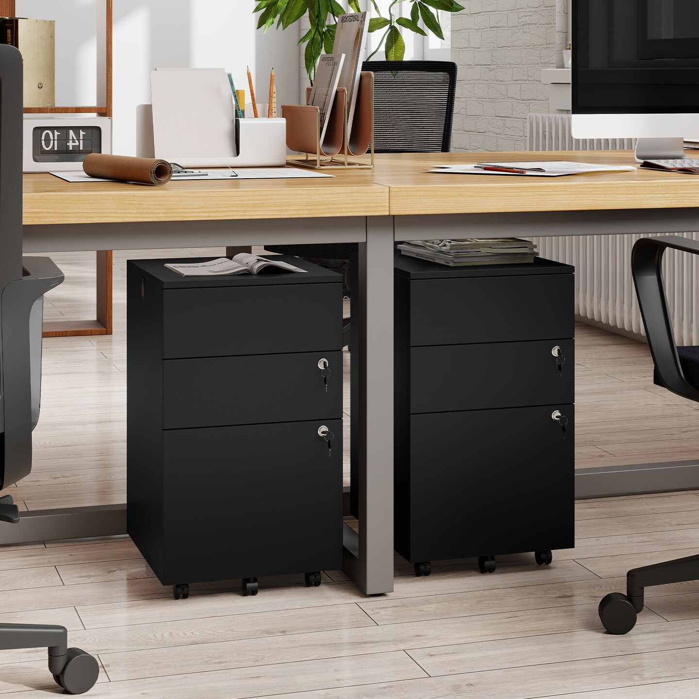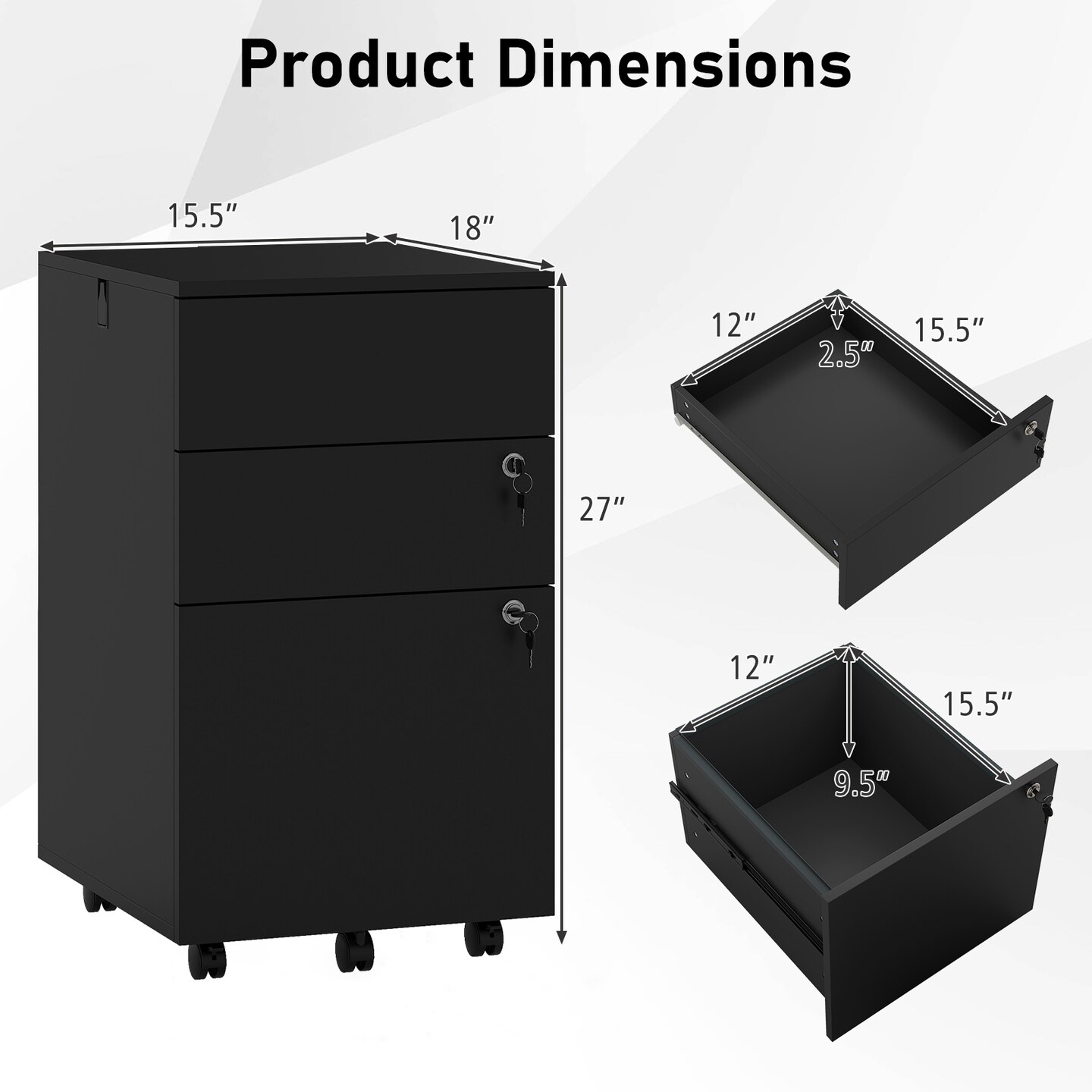Rolling File Cabinet MDF Engineered Wood 3-Drawer Organizer