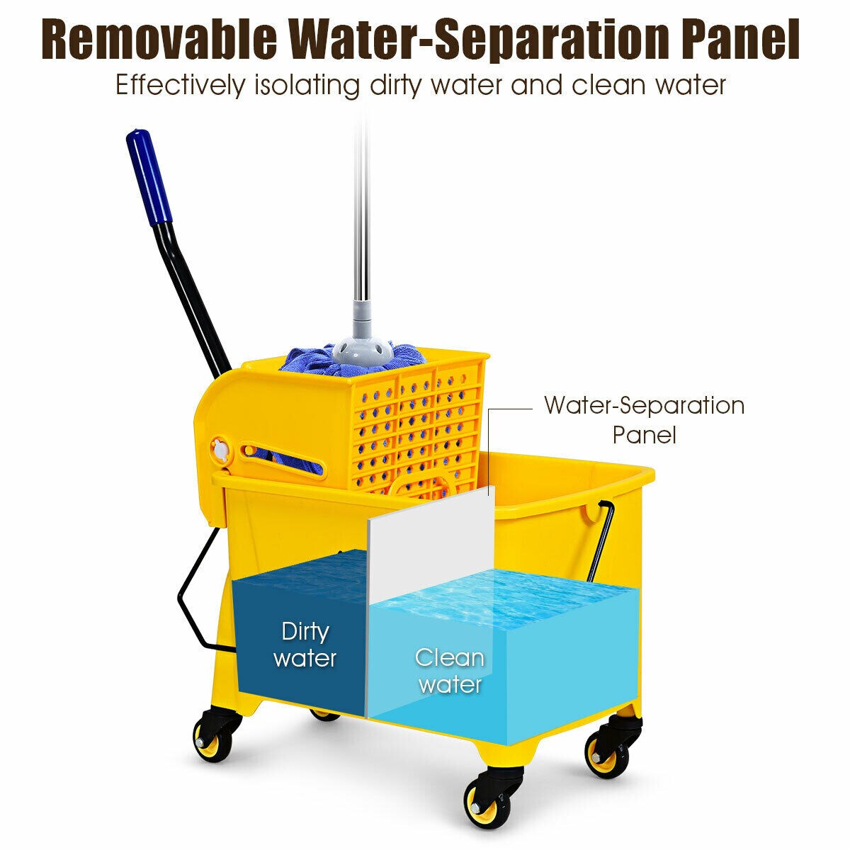 Rolling Mop Bucket with Side Press Wringer and 3" Wheels