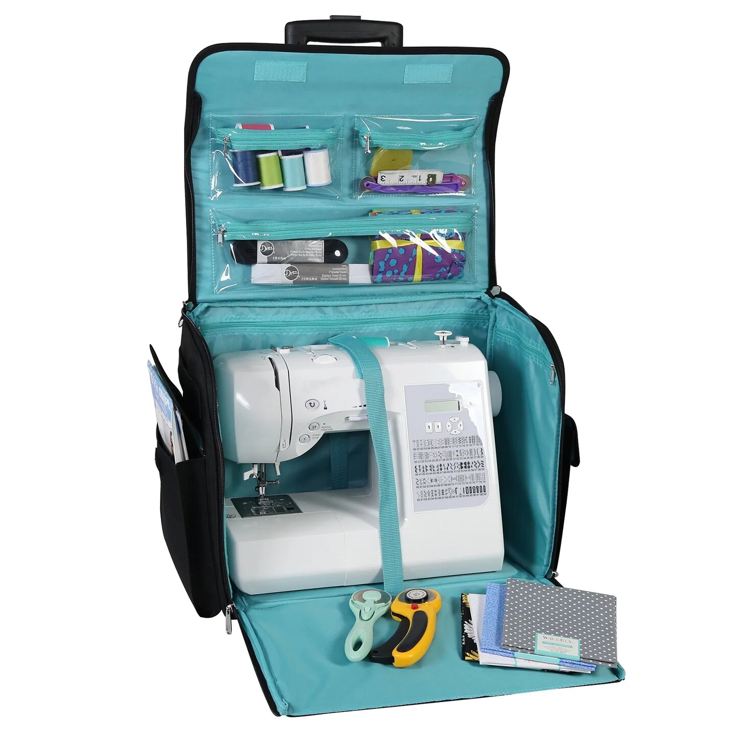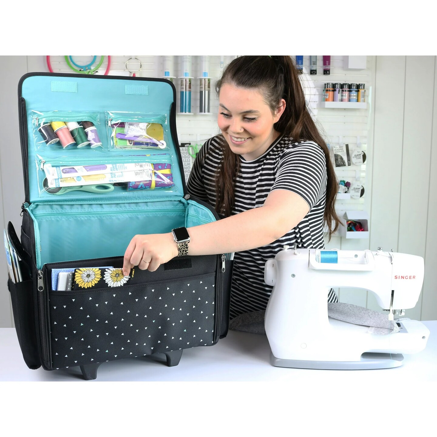 Rolling Sewing Machine Tote, Black & White Triangle Bag with Wheels & Telescoping Handle