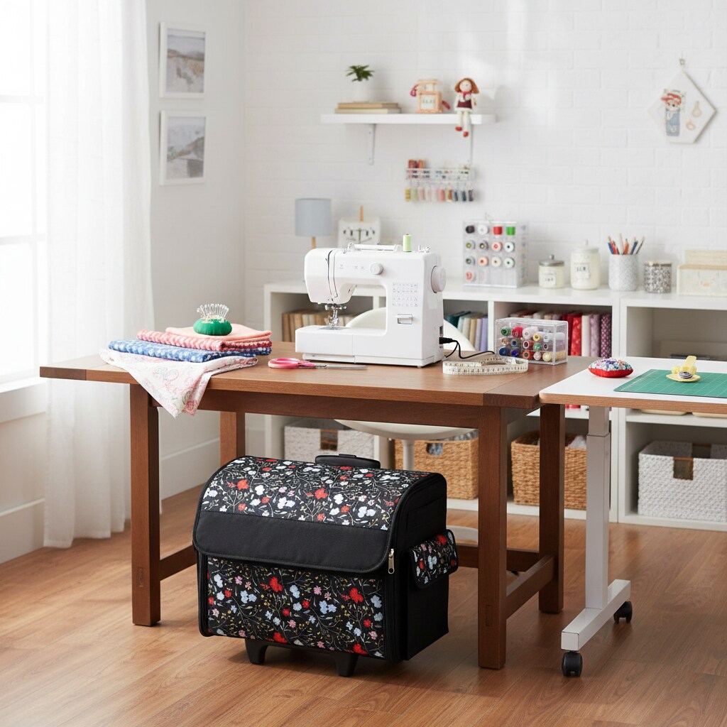 Rolling Sewing Machine Tote, Floral Storage Bag with Wheels & Telescoping Handle
