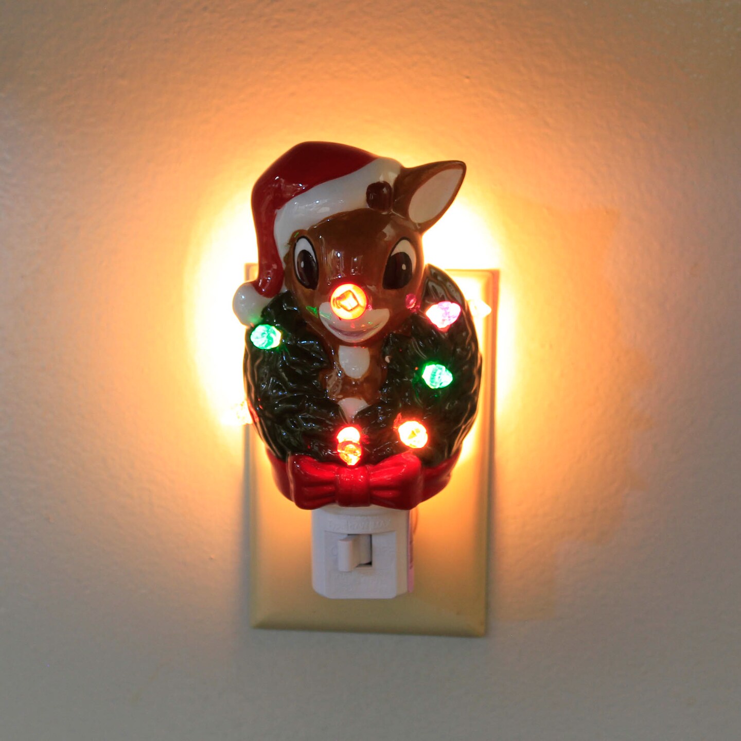 Roman 5.5 Inch Rudolph Night Light Christmas Nightlight , Red Nose Reindeer