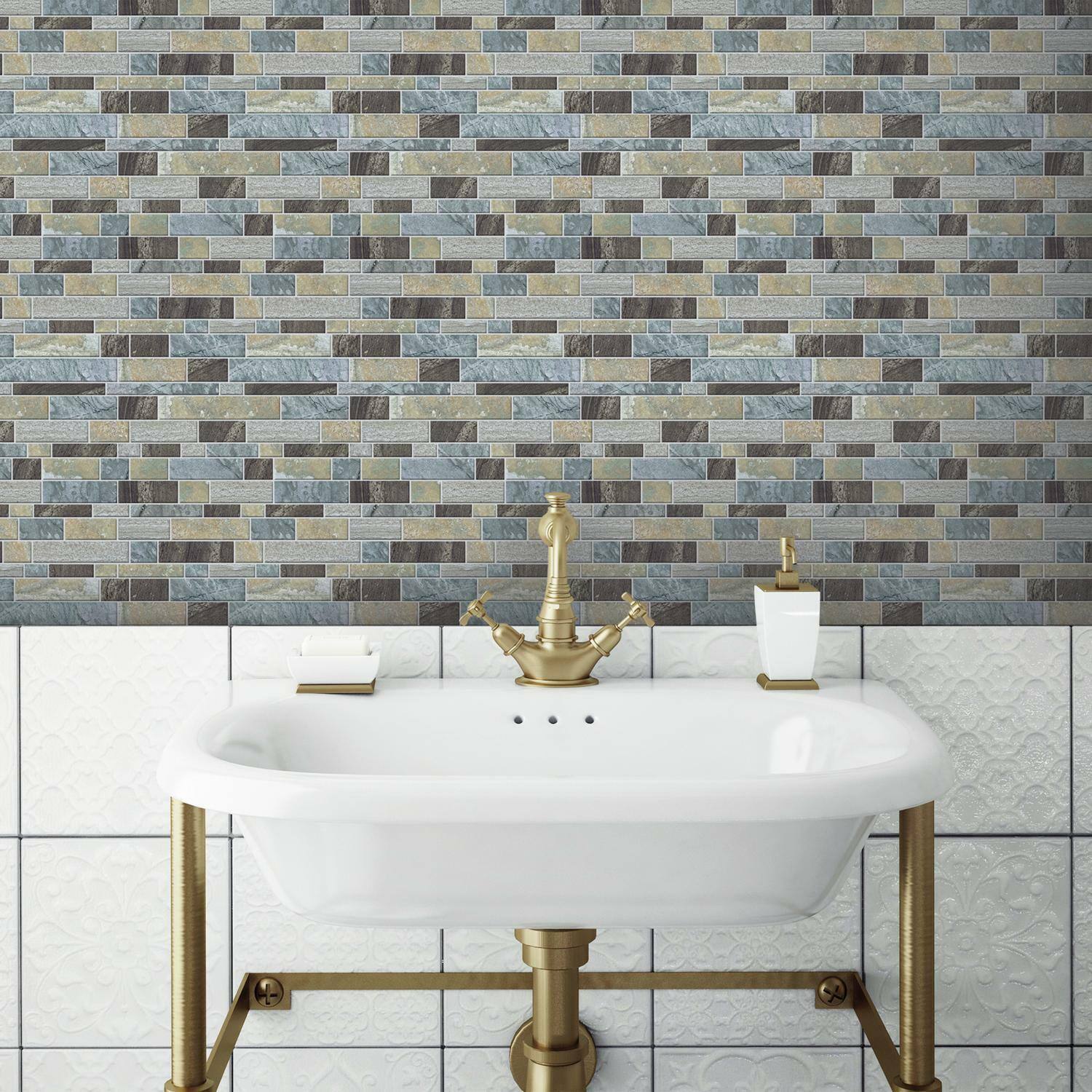 RoomMates Blue Long Stone Backsplash StickTiles