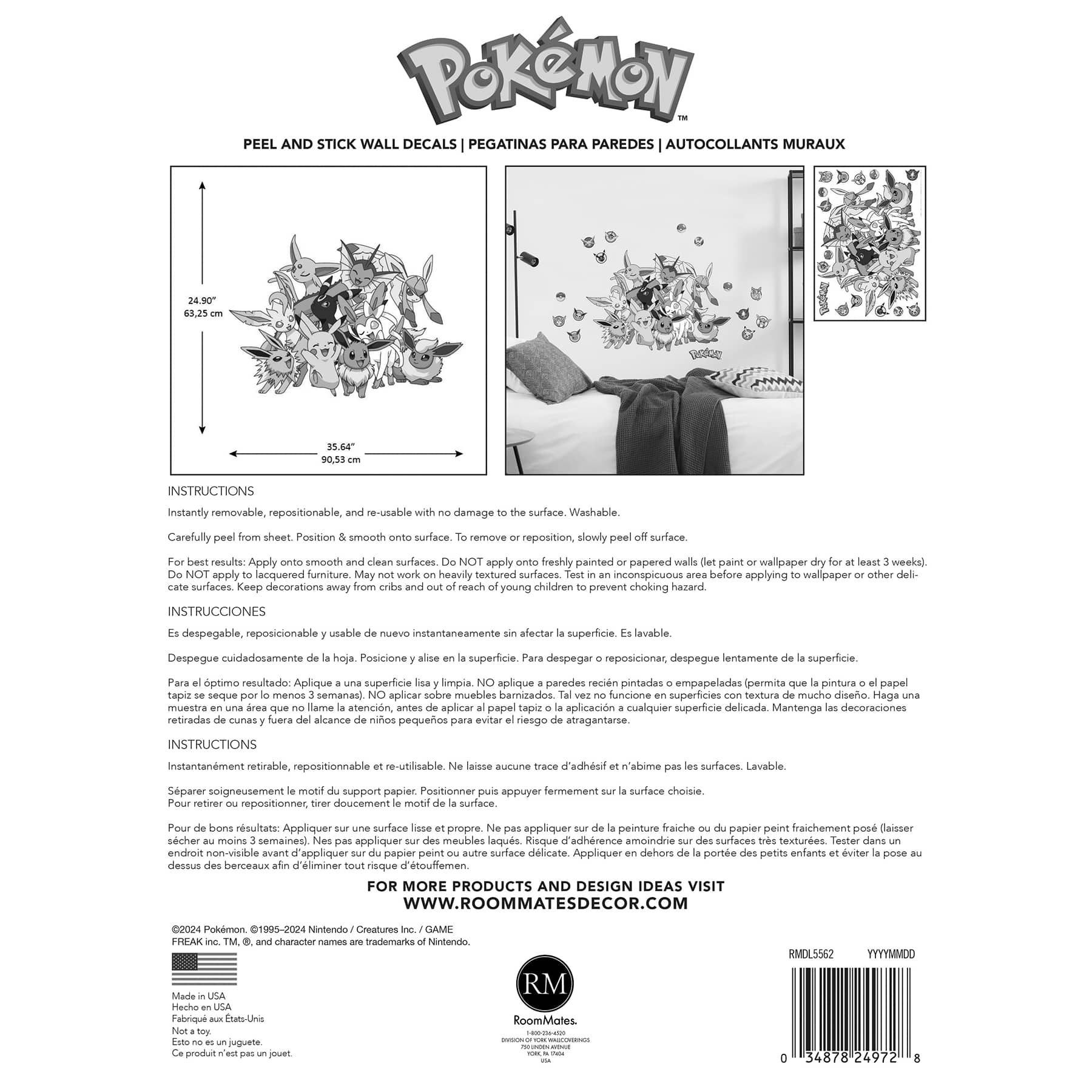 RoomMates Pokemon Eevee Evolutions Multicolor Wall Decals