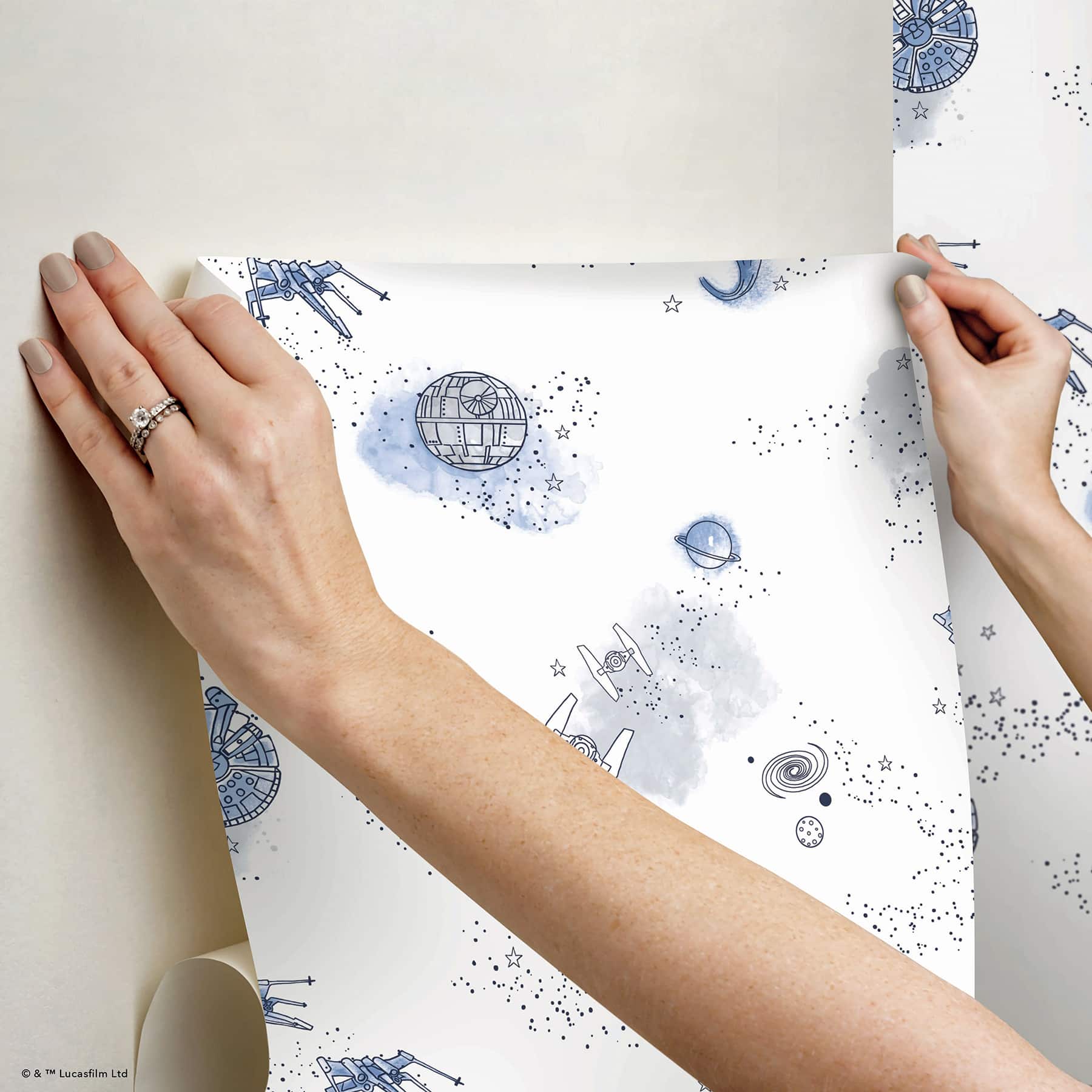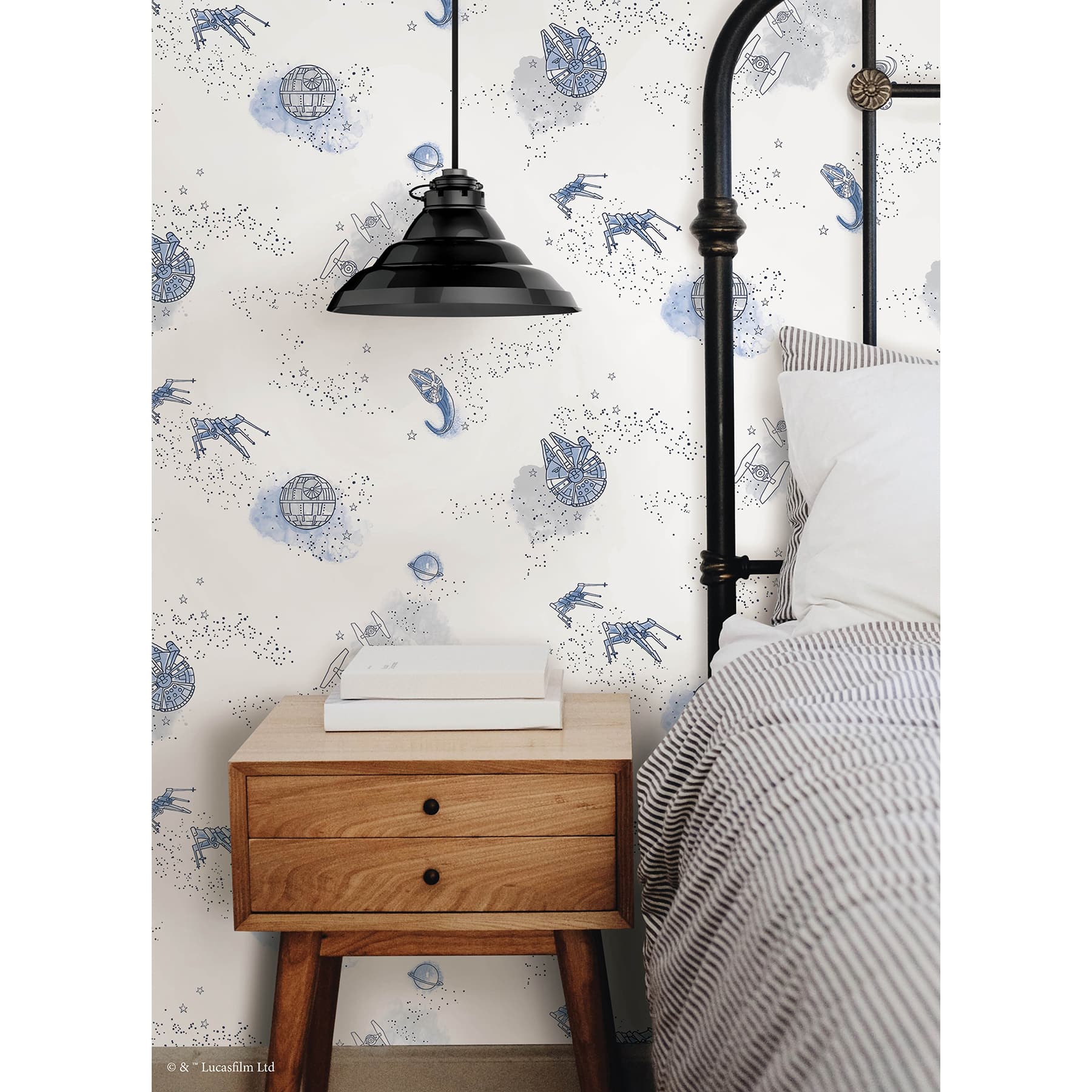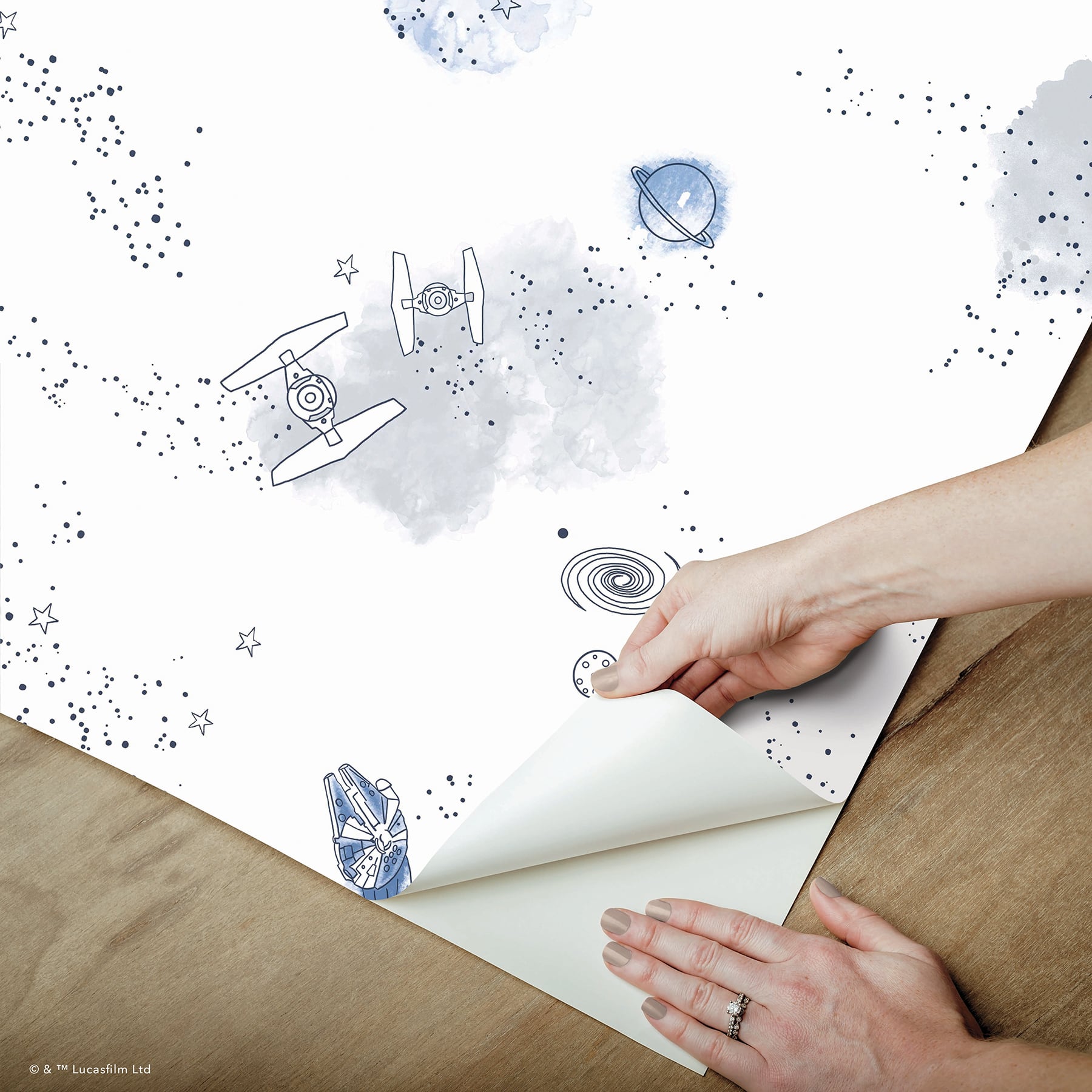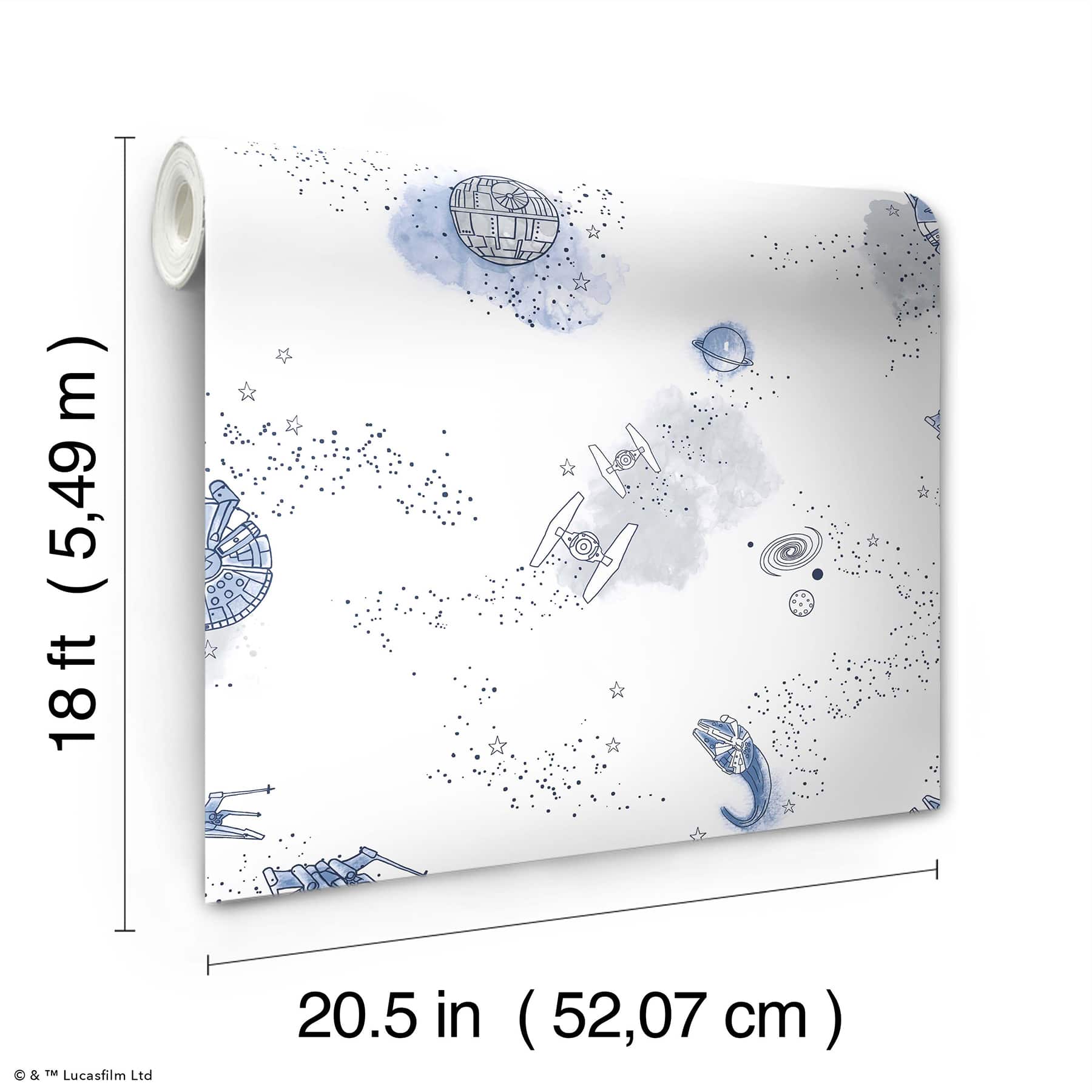 RoomMates STAR WARS Good Night Galaxy Blue and white STAR WARS Peel and Stick Wallpaper 20.5" x 18-ft roll covers about 30.8 sq. ft