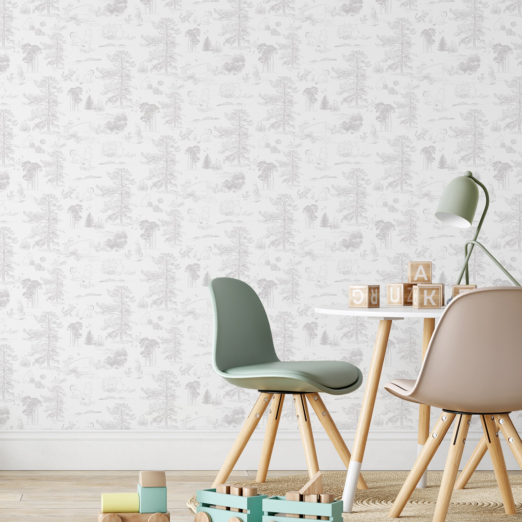 RoomMates Winnie The Pooh Gray Toile Peel & Stick Wallpaper