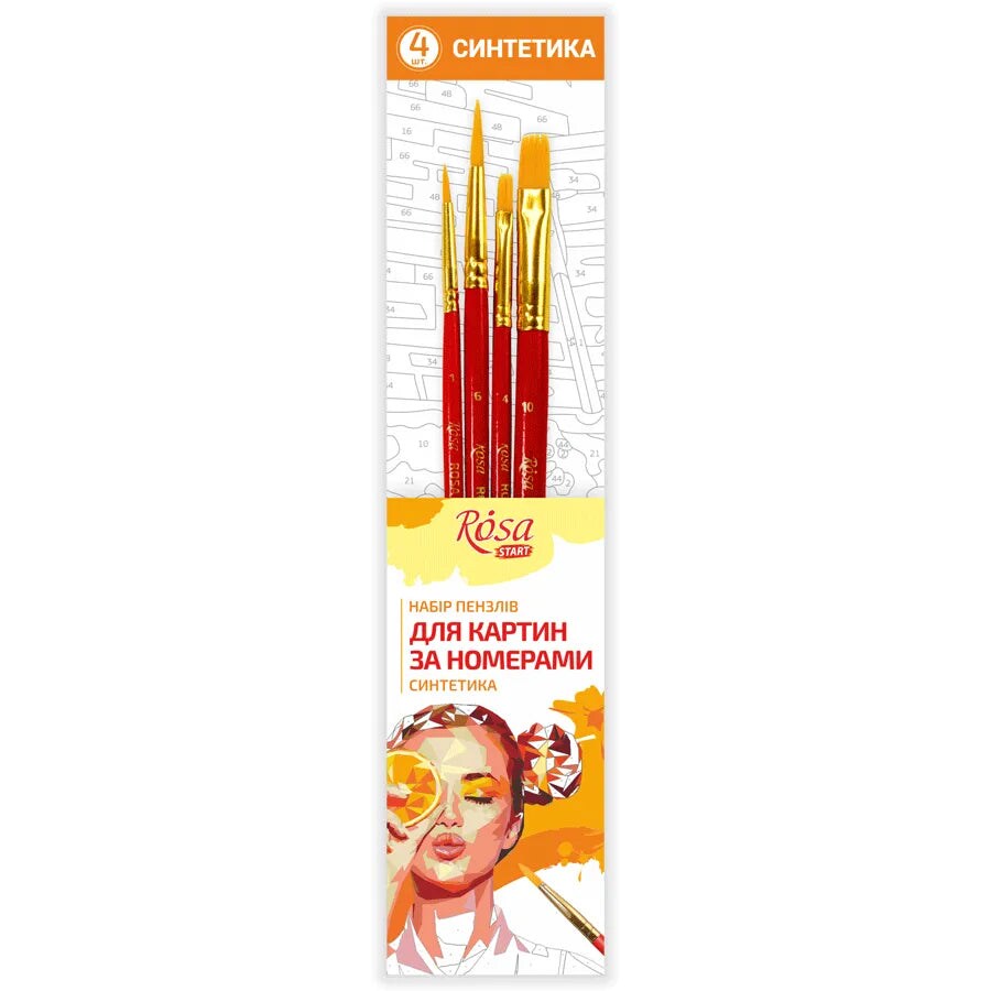 Rosa Start Set, paint brushes by numbers, synthetics, 4pcs, round (N1,6), flat (N 4,10), r.p.
