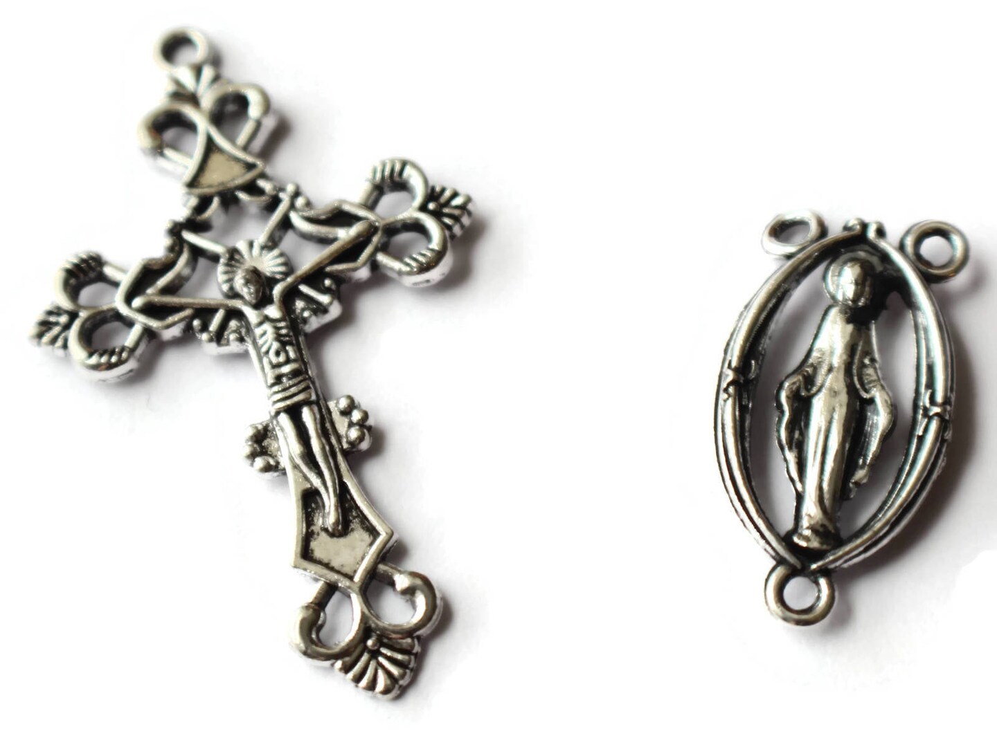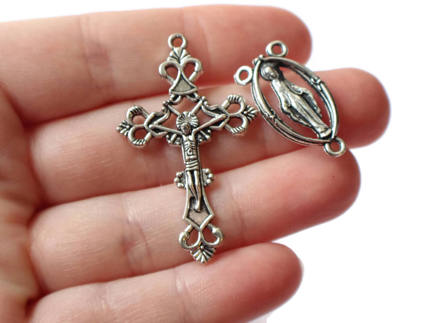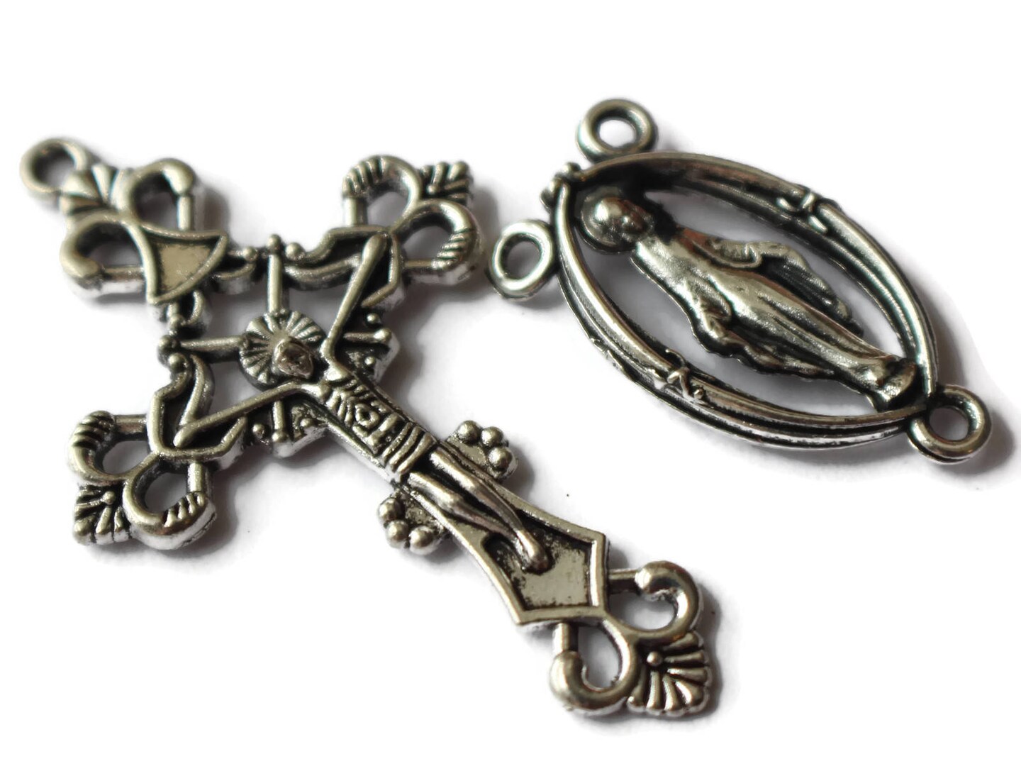 Rosary Crucifix and Centerpiece - Catholic Pendant and Link Set
