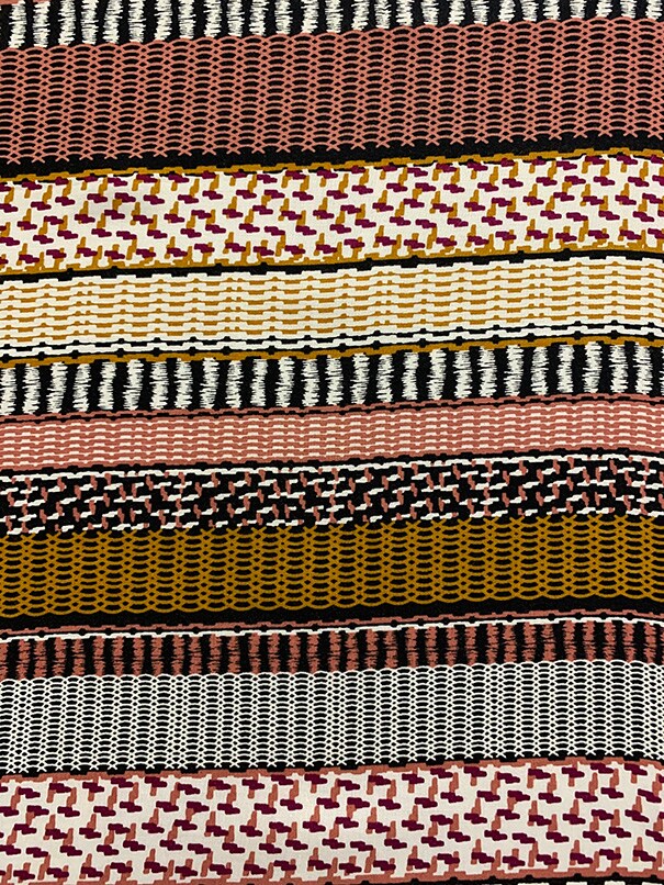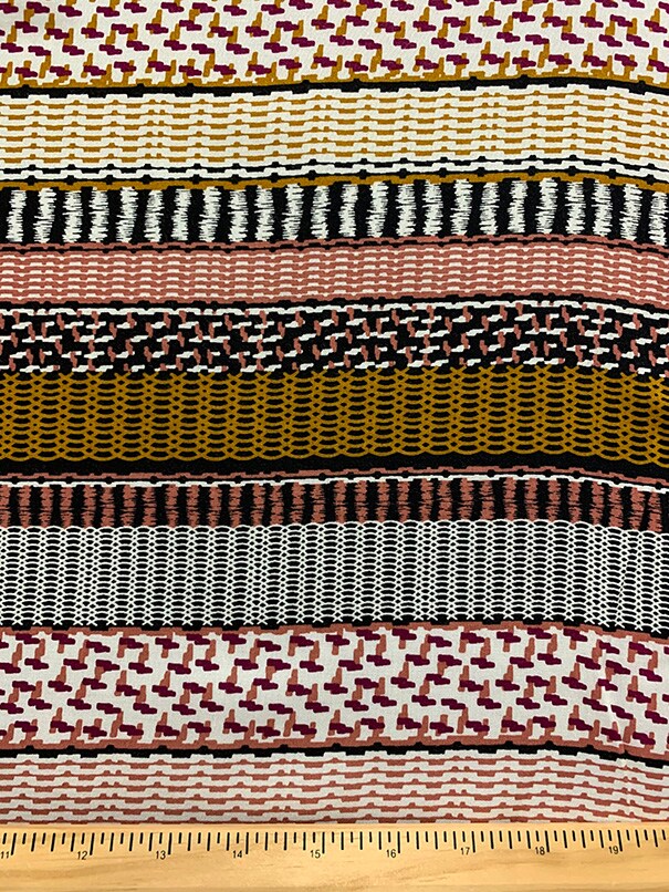 Rose and Copper Multi Stripe Print Rayon Challis Fabric By the Yard