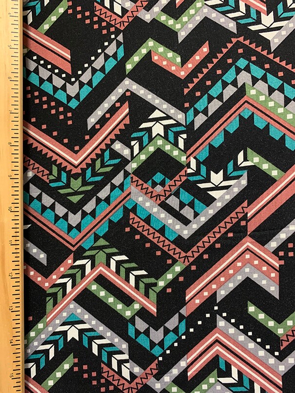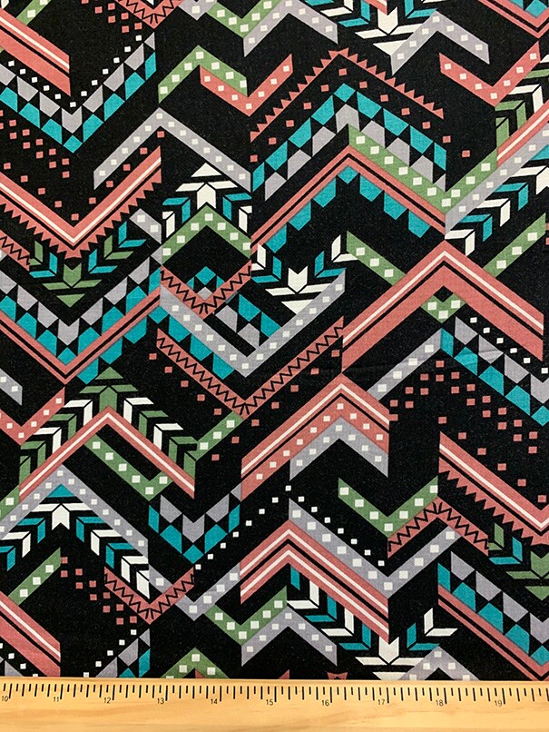 Rose and Teal Multi Broken Chevron Print Rayon Challis Fabric By the Yard