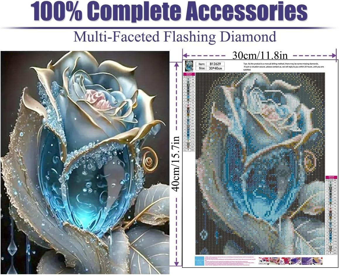 Rose Diamond Painting Kits for Adults-Flower Diamond Art Kits for Adults,Round 5D Floral Gem Art Kits for Adult DIY Crafts Kits Gift Home Wall Decor Gifts16x12inch