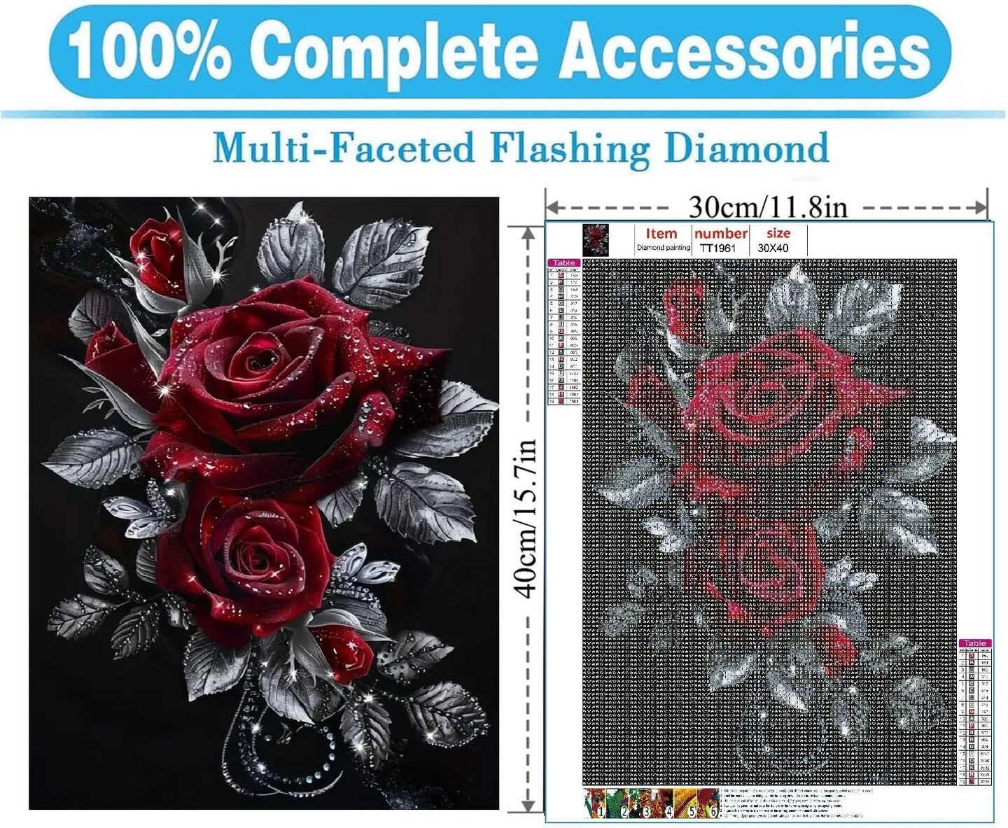 Rose Diamond Painting Kits for Adults,Rose Flower Diamond Art Kits for Beginners,Roses Gem Art Kits for Adults for Home Wall Decor 16x12inch Floral