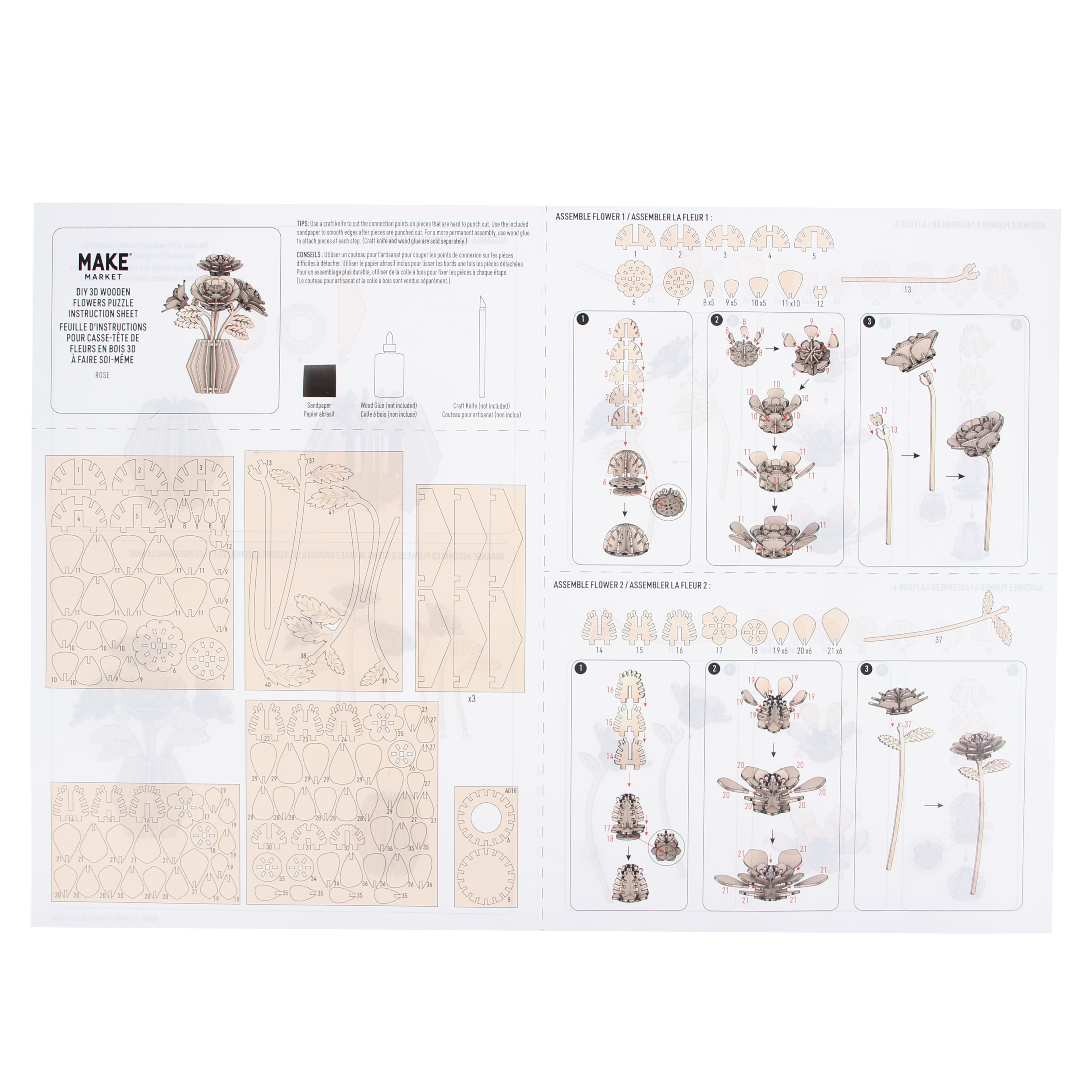 Rose DIY 3D Wooden Flower Puzzle by Make Market®