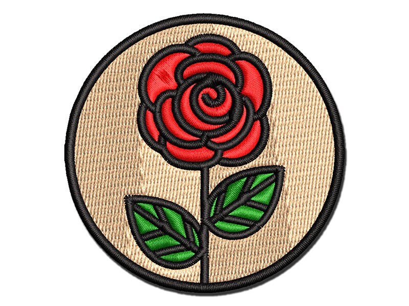 Rose Flower in Circle Multi-Color Embroidered Iron-On or Hook & Loop Patch Applique