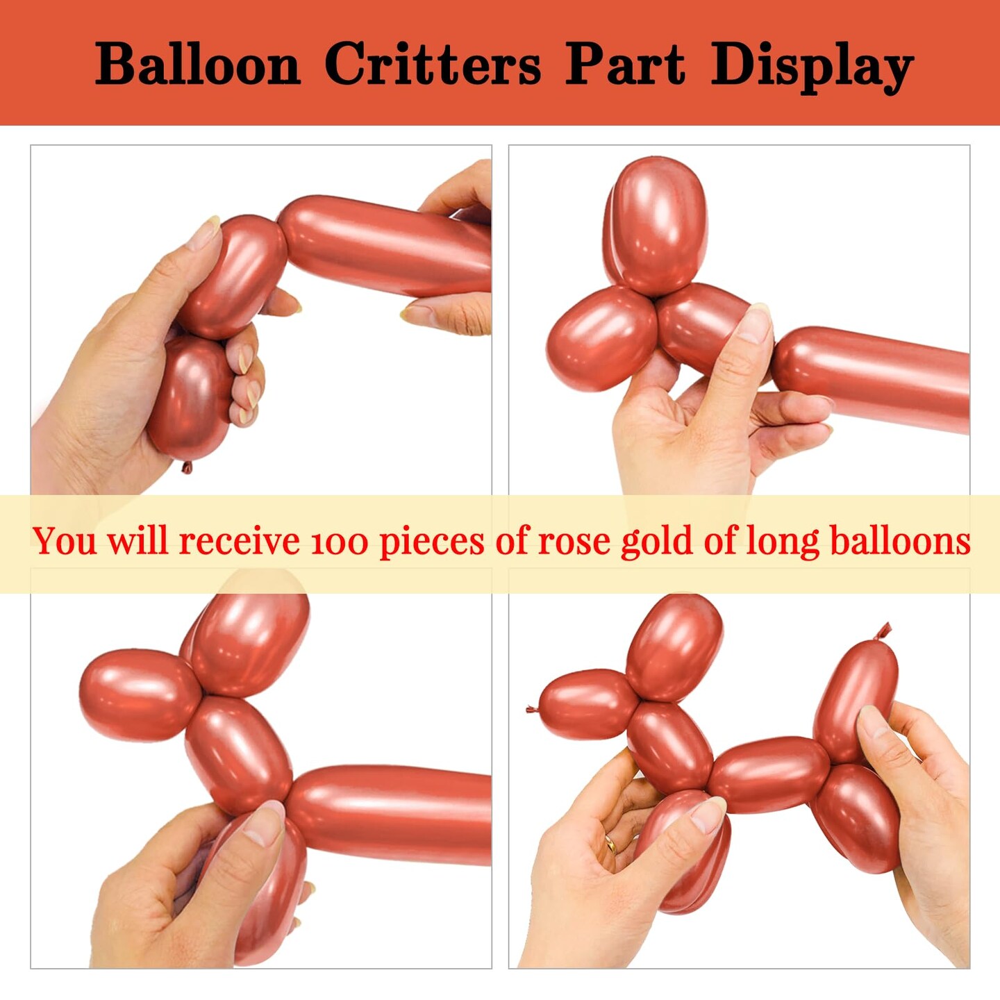 Rose Gold 260 long balloons 100 Pack Metallic Rose Gold Twisting Animal Balloons Modeling Long Magic Balloons for DIY Animal Model Wedding Birthday Festival Party Decorations(Metallic Rose Gold)
