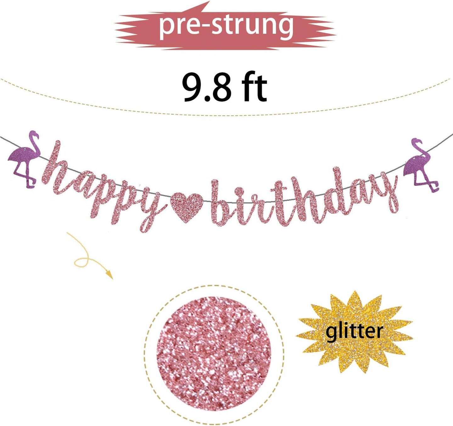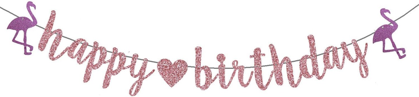 Rose Gold Happy Birthday Tropical Banner