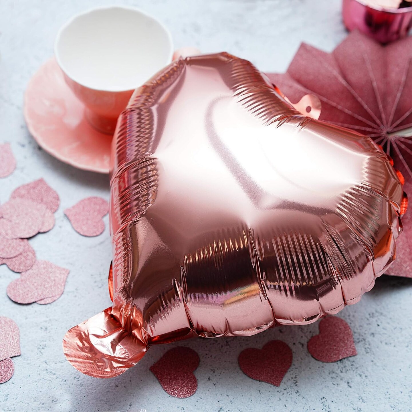 Rose Gold Heart Foil Mylar Balloons - Valentines Day Party Wedding Bachelorette Anniversary Birthday Bridal Shower Party Favors Balloons Decorations, 50pc