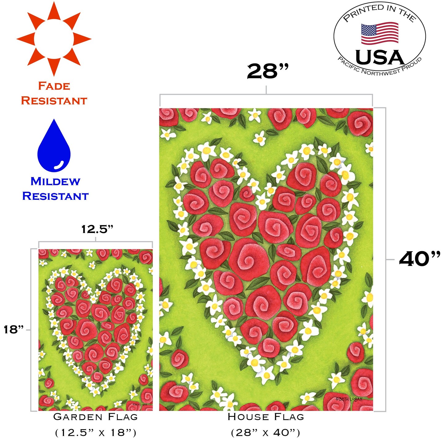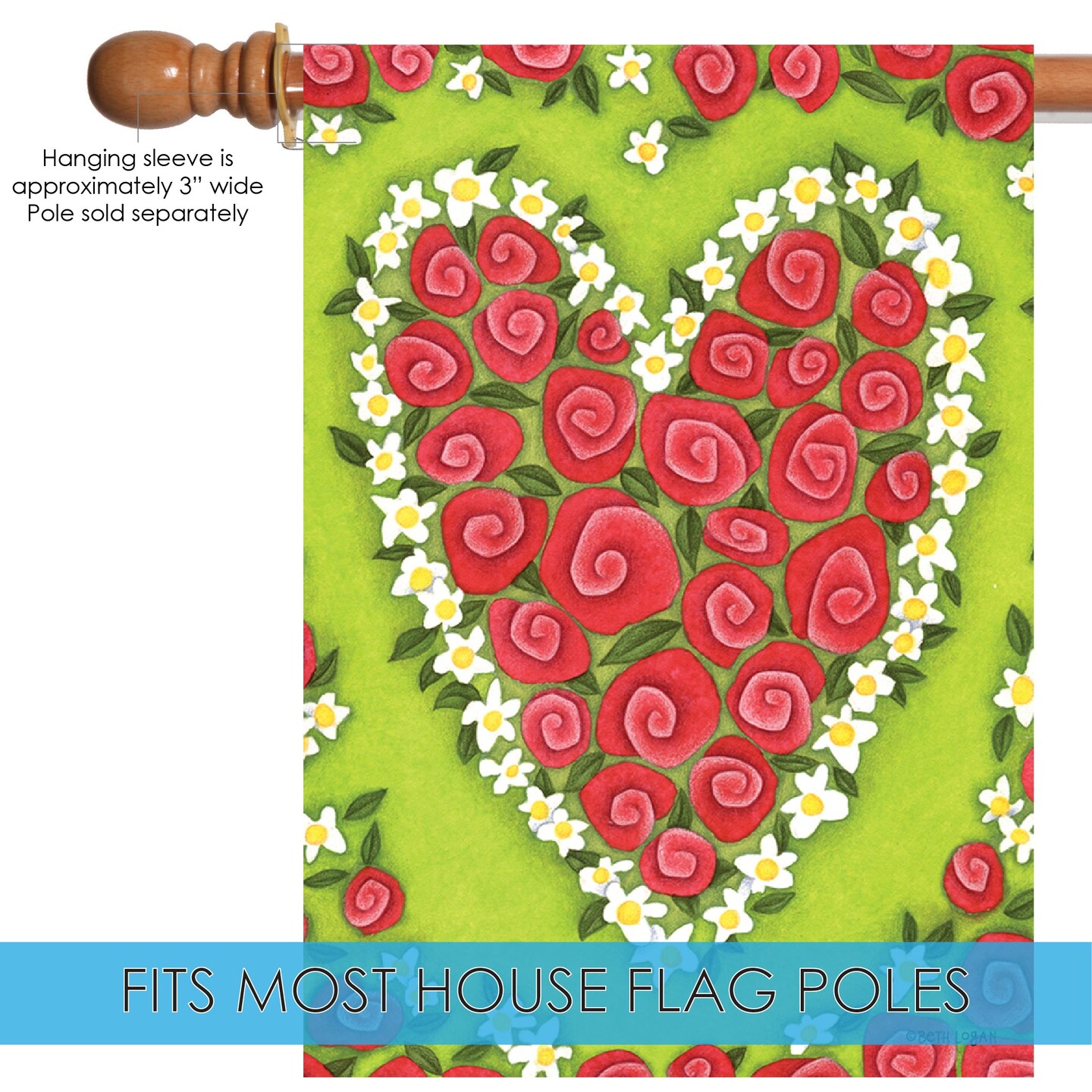 Rose Heart Decorative Valentine Flag