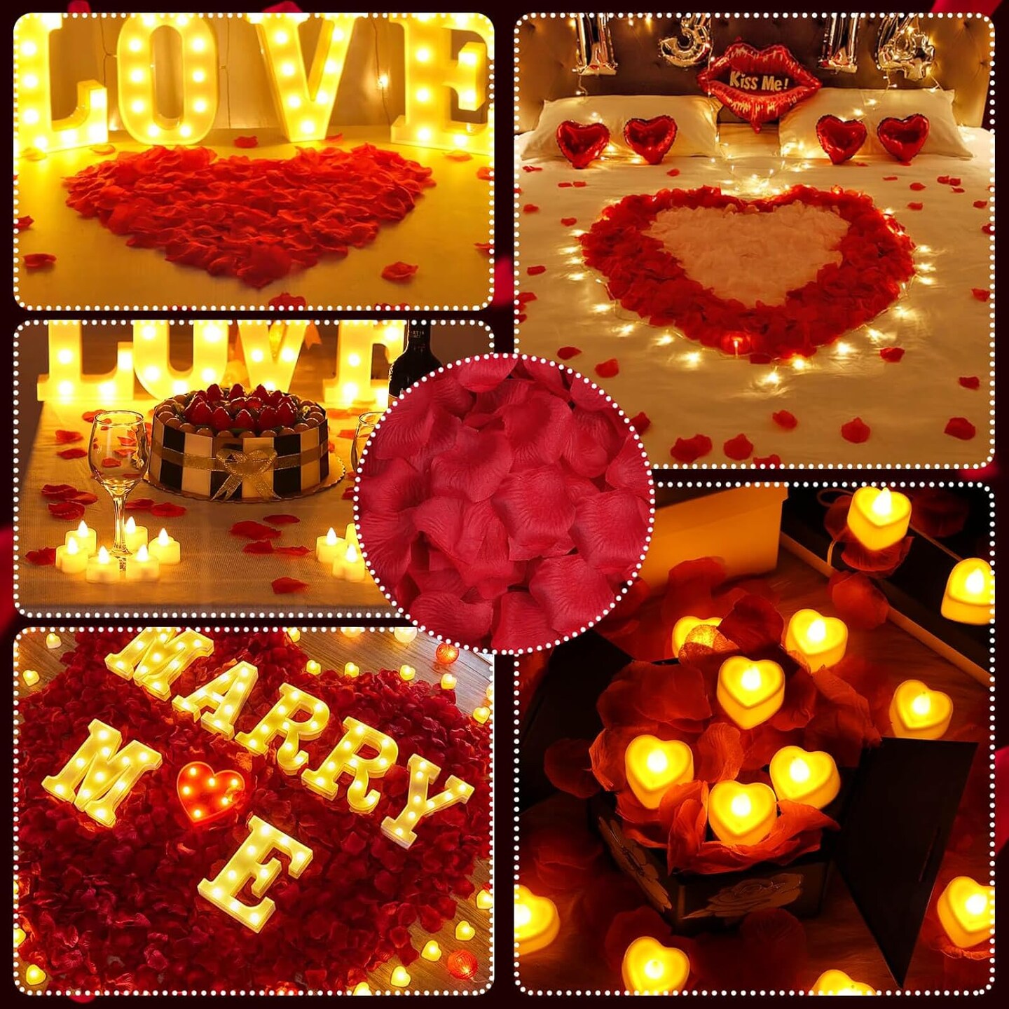 Rose Petals and Candles Set for Romantic Decoration, 3000 Pcs Red Rose Petals and 36 Pcs Heart Candle Lights for Special Night