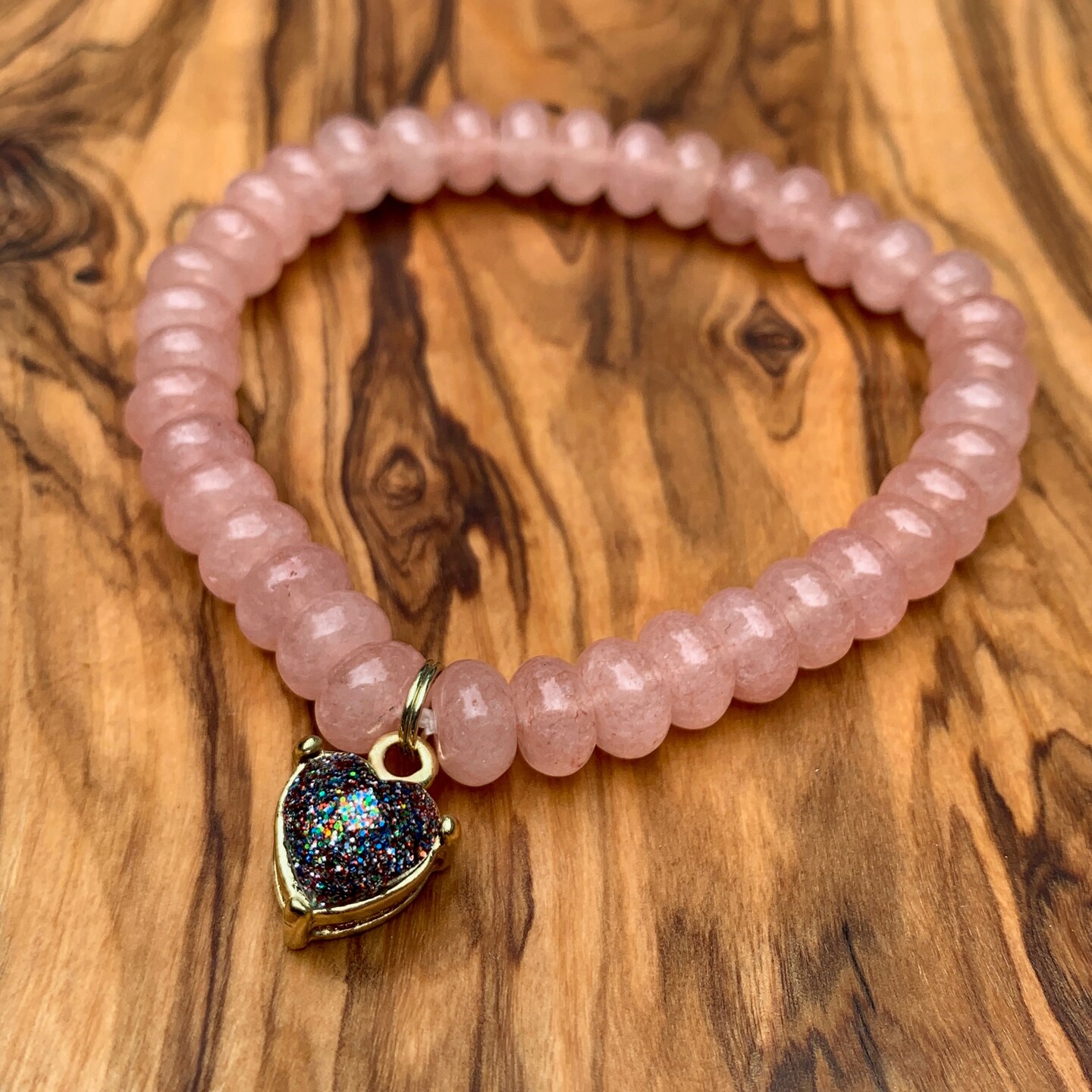 Rose Quartz Bracelet with Fairy Tale Heart Charm