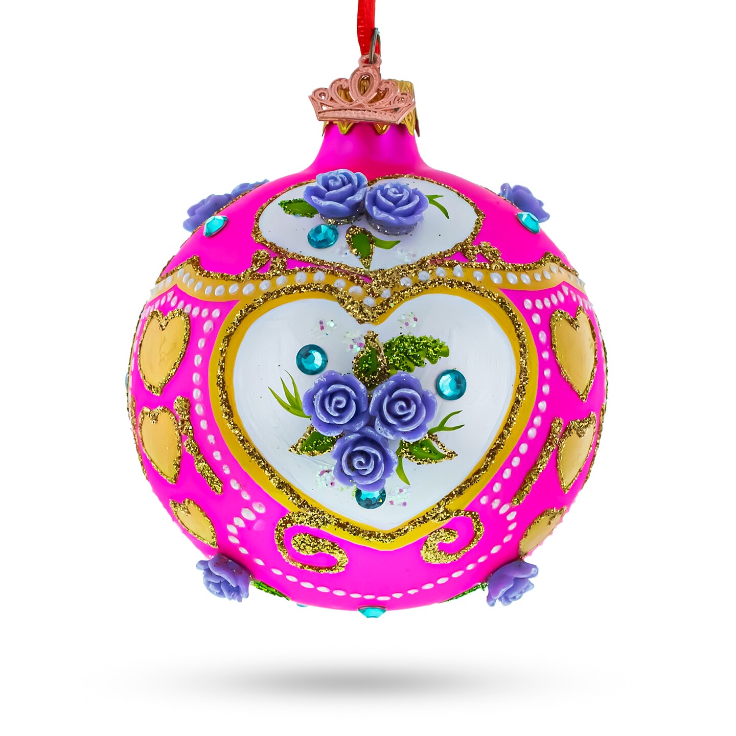 Roses on Pink Glass Ball Christmas Ornament 3.25 Inches