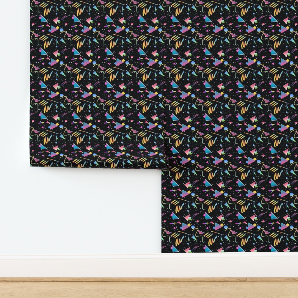 Rosetipitinodesigns 1980S Eighties Retro 80S Vintage Glam Party Music Black Neon Trendy Home Decor Custom Pre-pasted Wallpaper by Spoonflower Pre-Pasted Wallpaper 2FT Wide