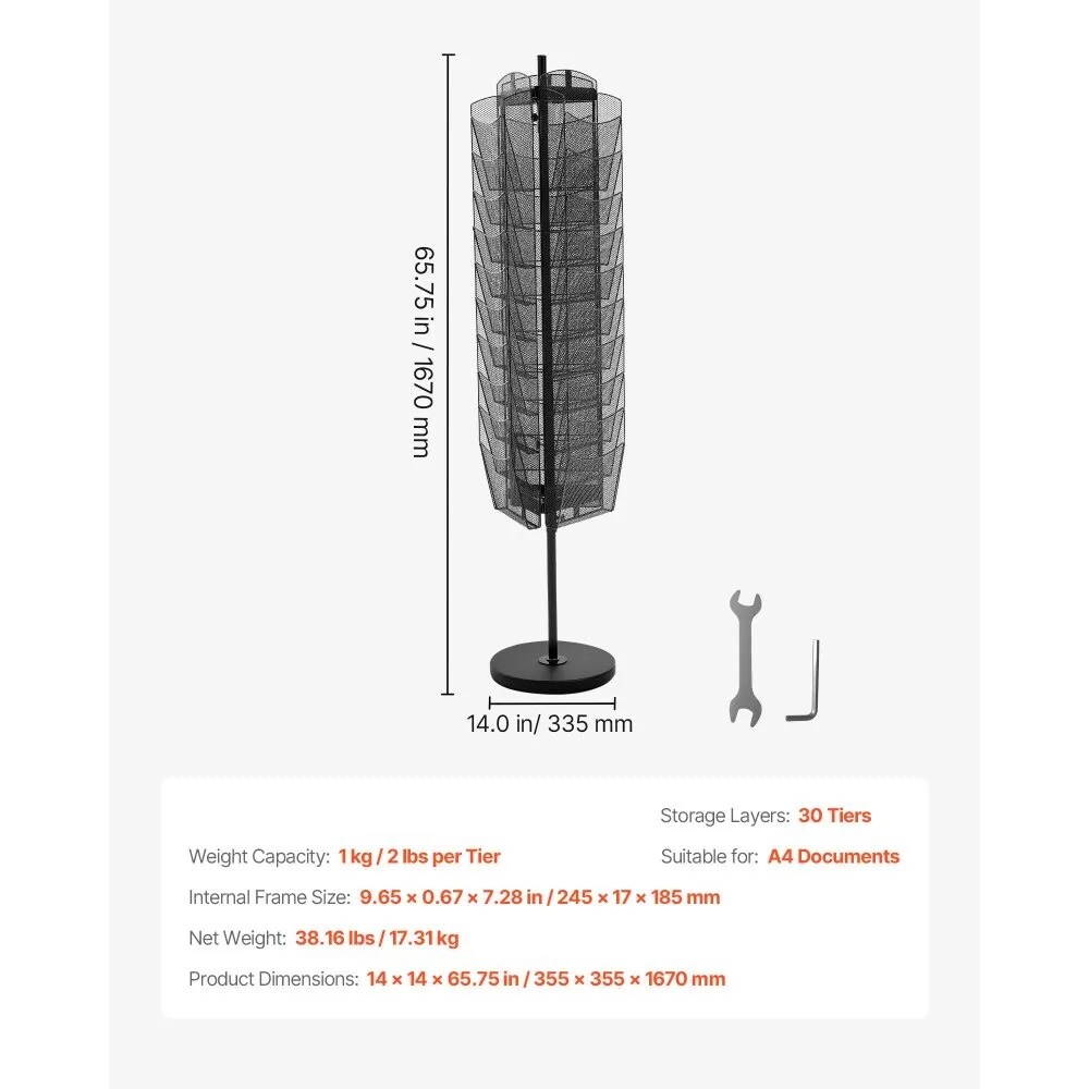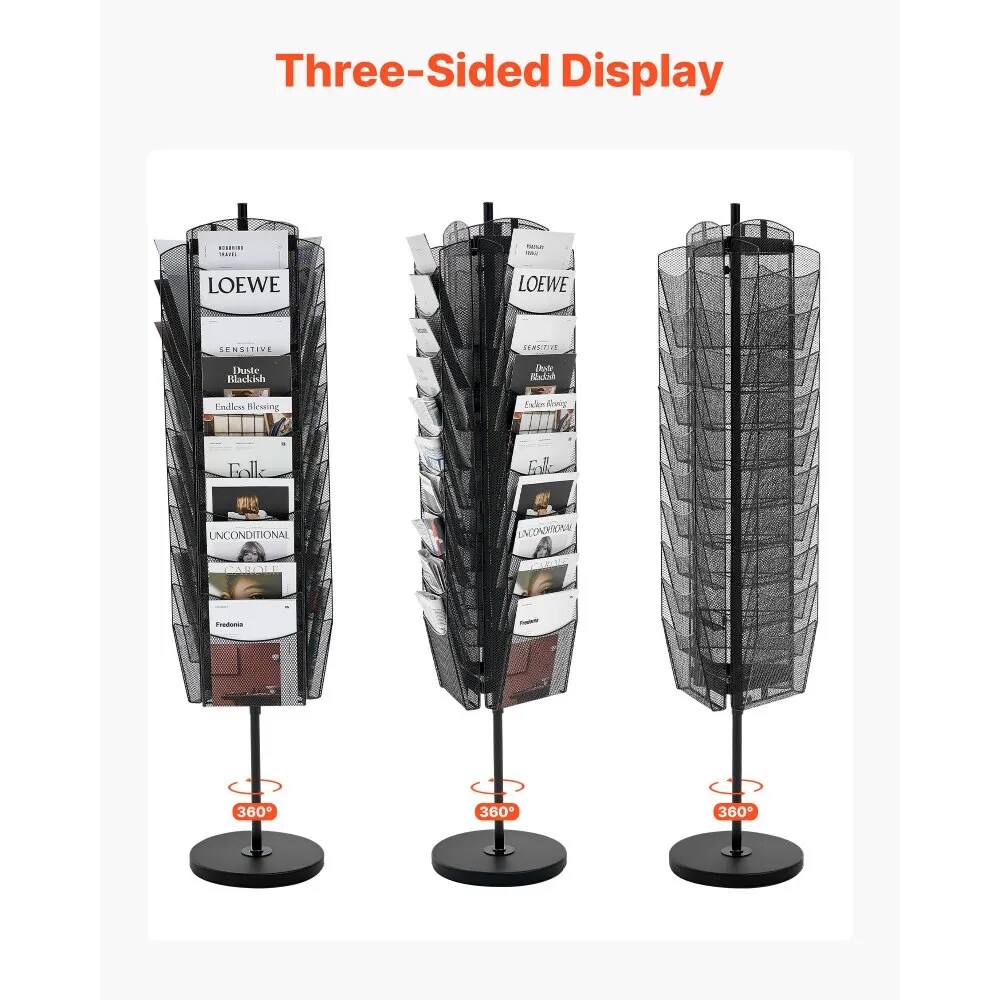 Rotating Magazine & Brochure Display Rack 30 Pockets Portable Floor Stand Metal Newspaper Holder
