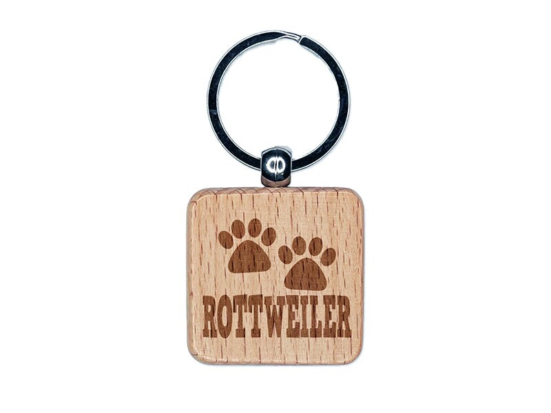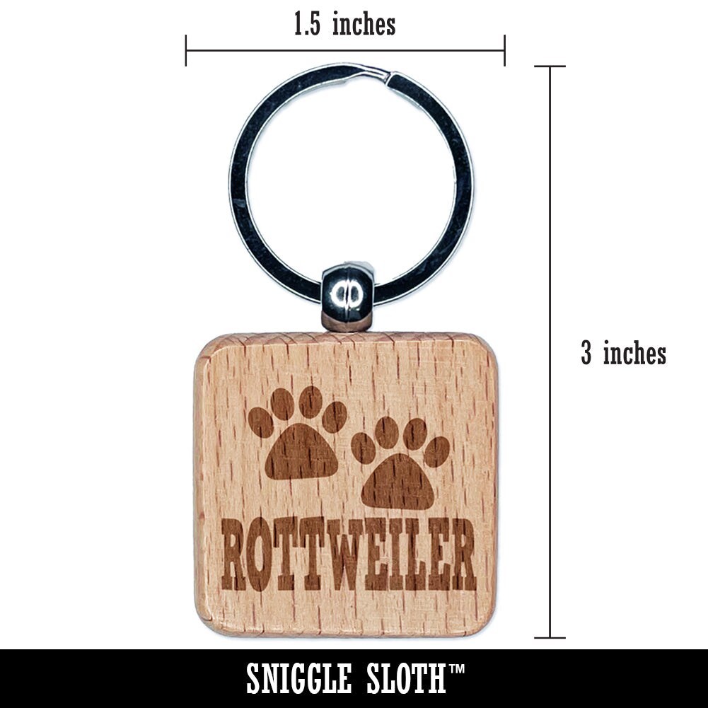 Rottweiler Dog Paw Prints Fun Text Engraved Wood Square Keychain Tag Charm