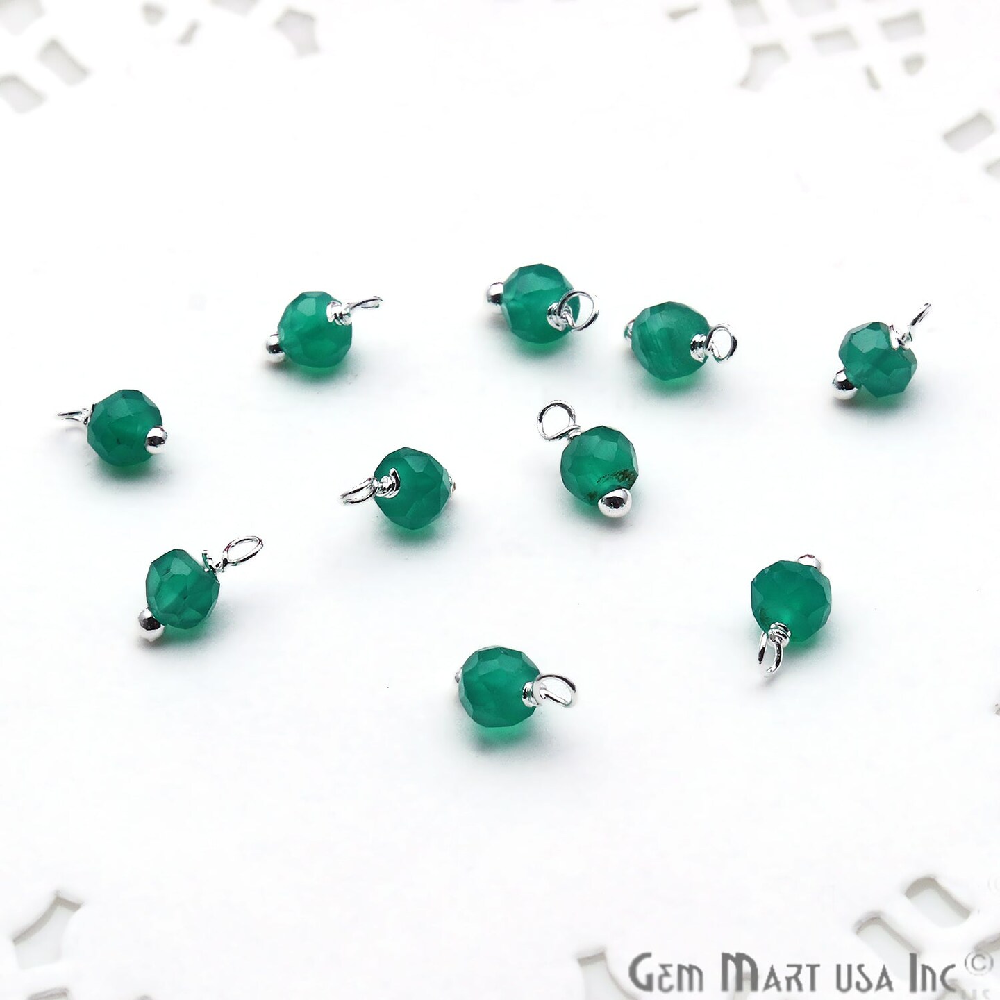 Rough Gemstone Charms, Round 6x4mm Natural Connector, Silver Plated Wire Wrapped, DIY Jewelry, 10pc Lot, GemMartUSA (50150)