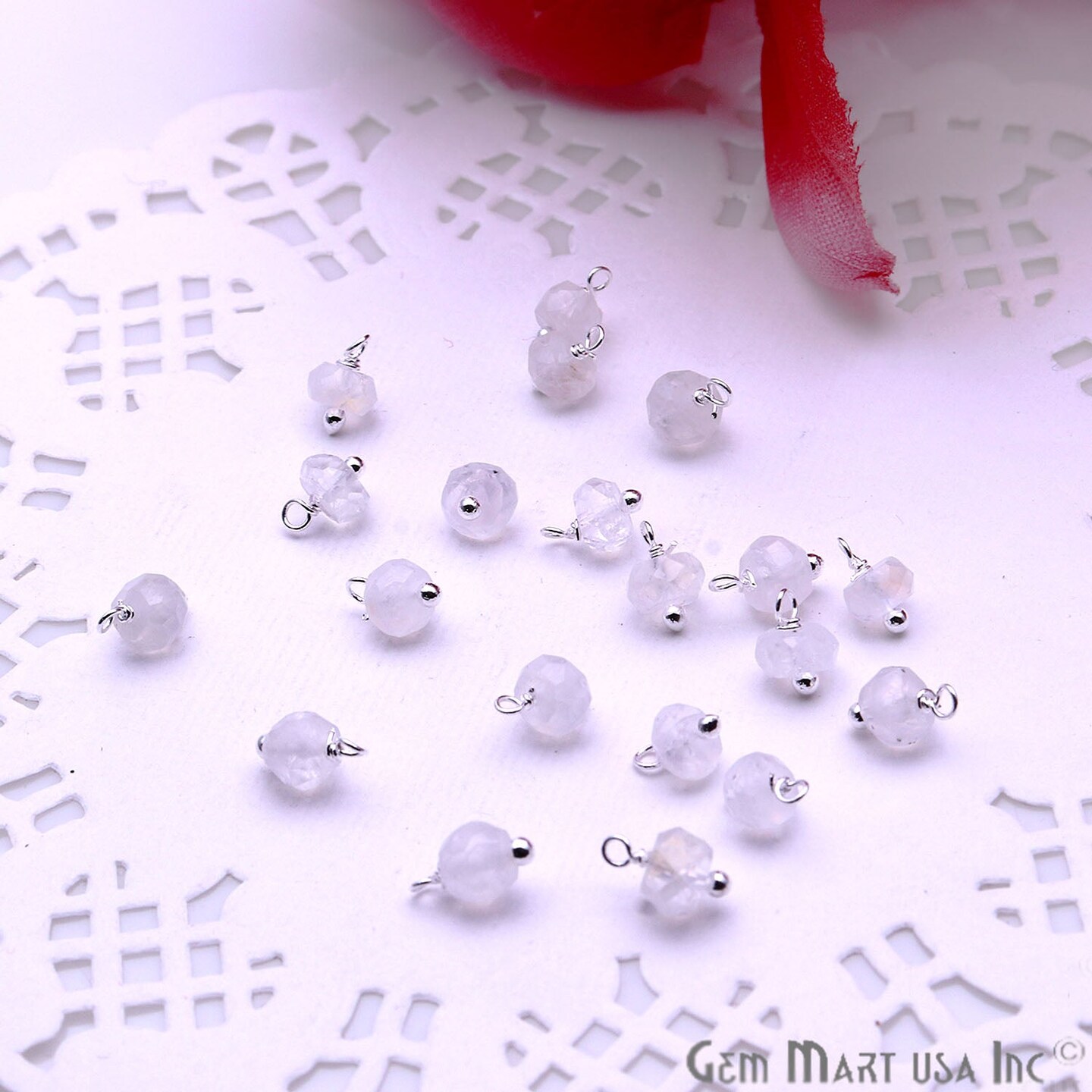 Rough Gemstone Charms, Round 6x4mm Natural Connector, Silver Plated Wire Wrapped, DIY Jewelry, 10pc Lot, GemMartUSA (50150)