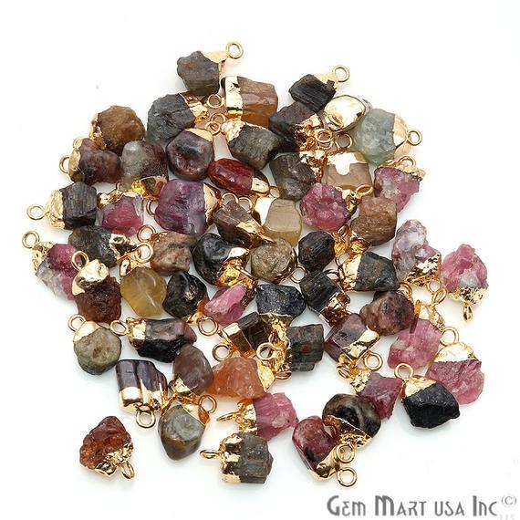 Rough Gemstone Pendant, Birthstone Raw Pendant, Gold Electroplated Connector Charms, 11X6mm (Approx), 1 pc, GemMartUSA (50469)