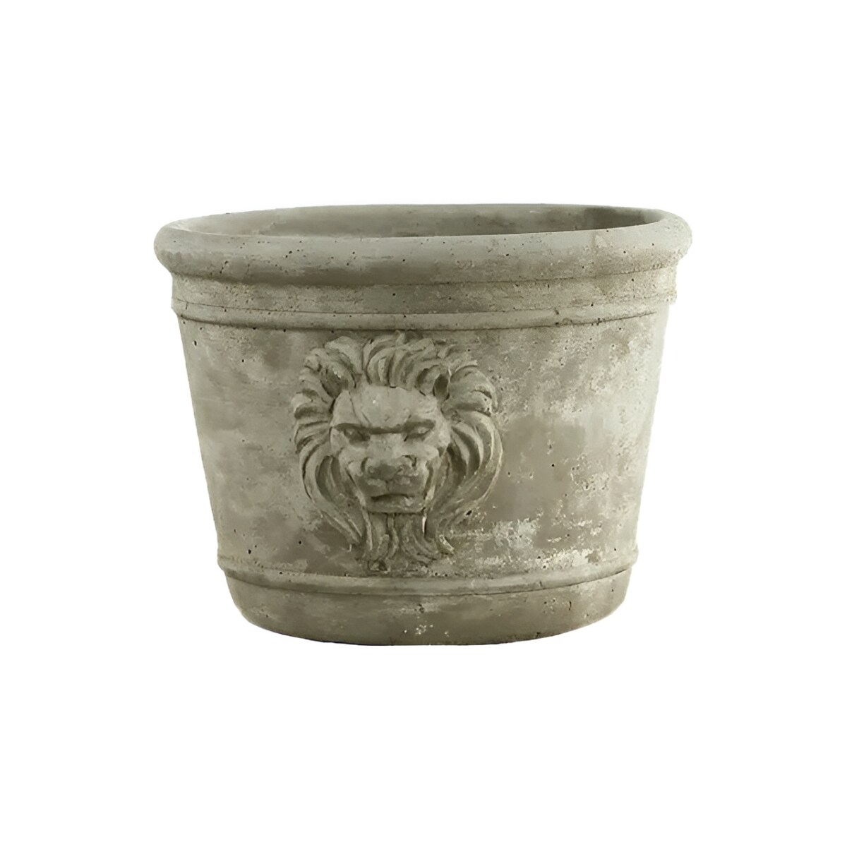 Round Cement Lion Head Planter Pot Indoor Outdoor Decorative Plant Pot