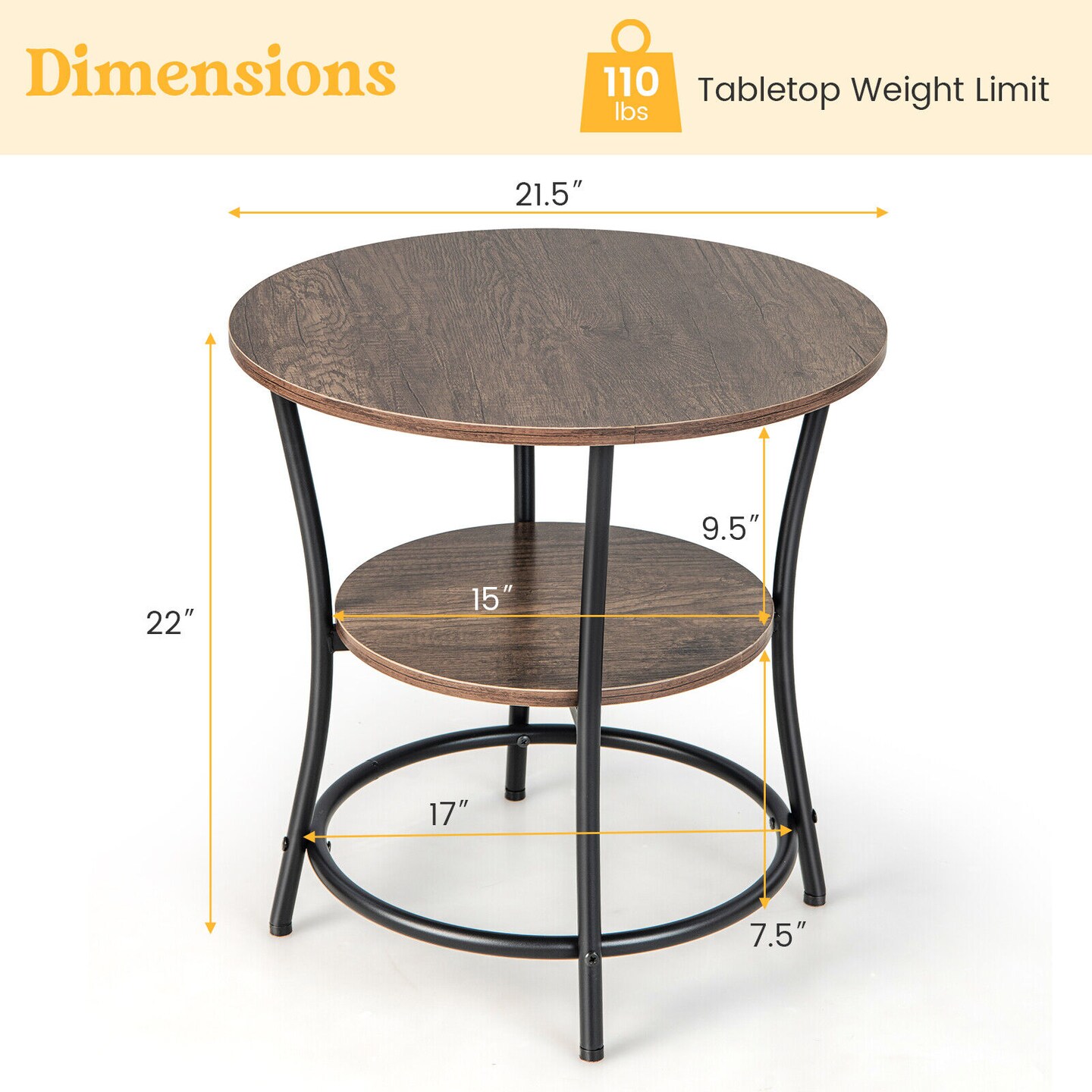 Round End Table with Open Storage Shelf and Sturdy Metal Frame