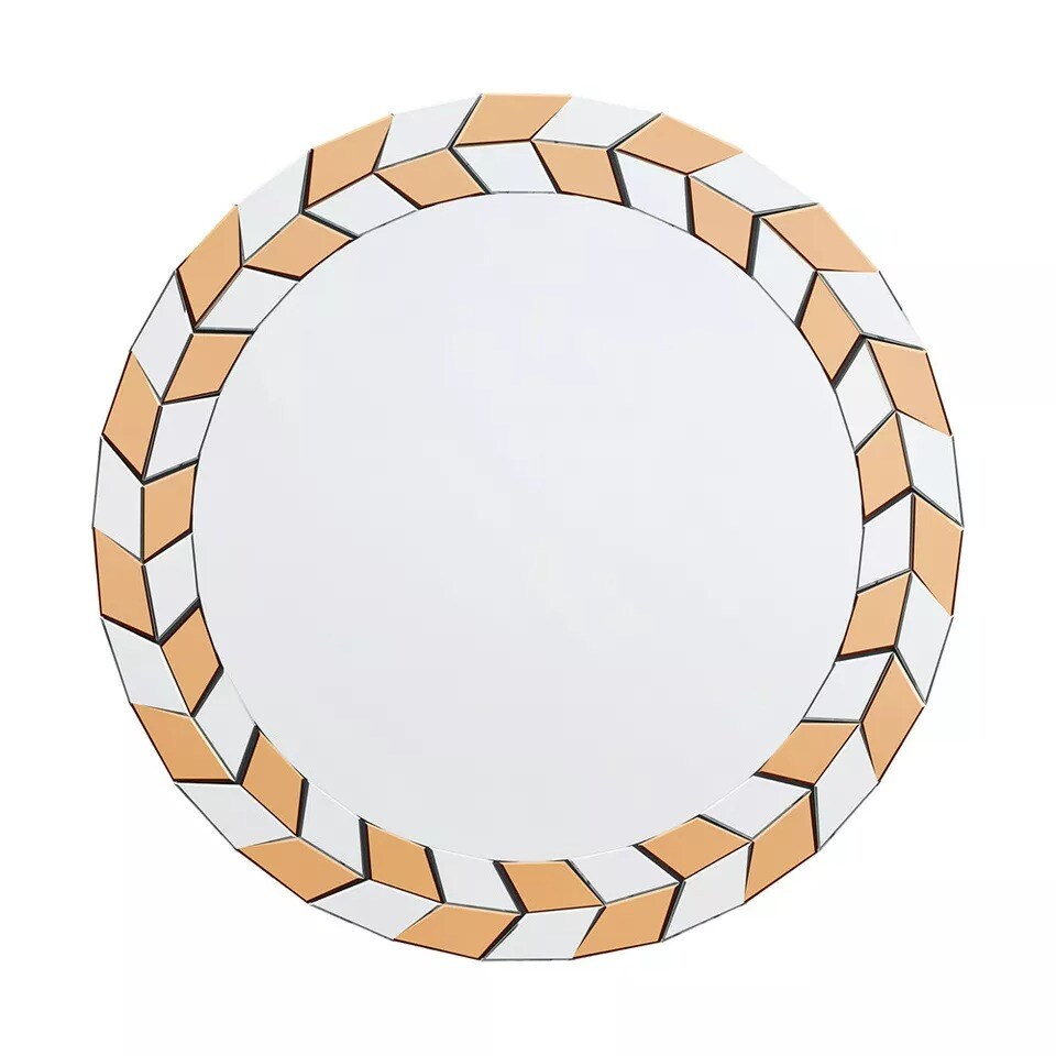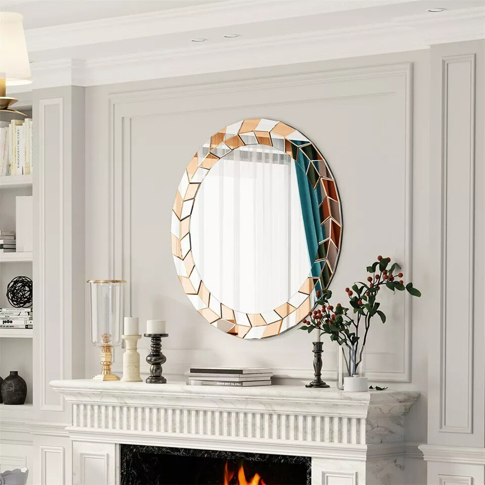 Round Mirror Wall Decor Beveled Glass Frame Modern Accent Mirror Silver + Tawny