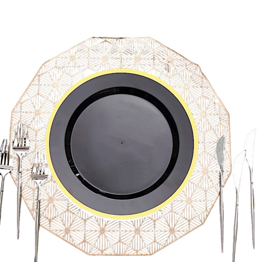 Round Plastic Dessert Plates with Gold Rim