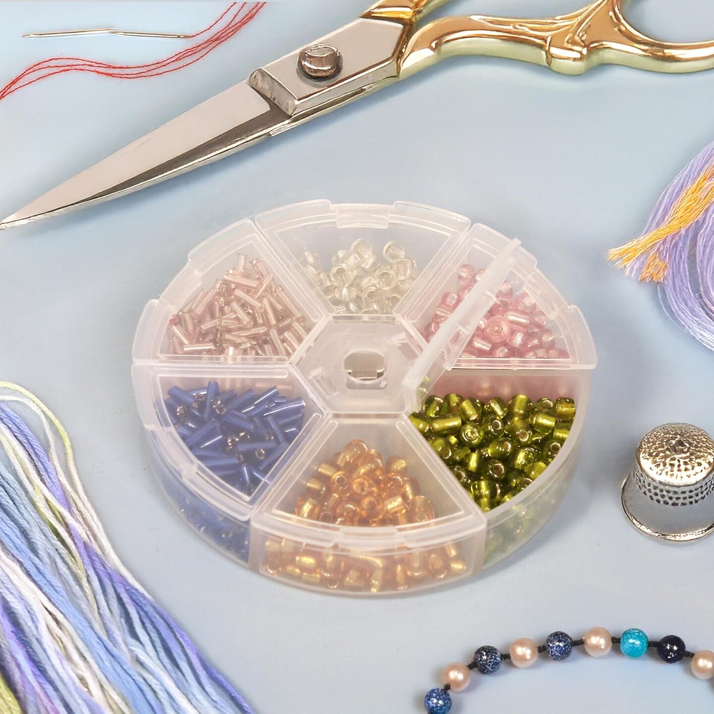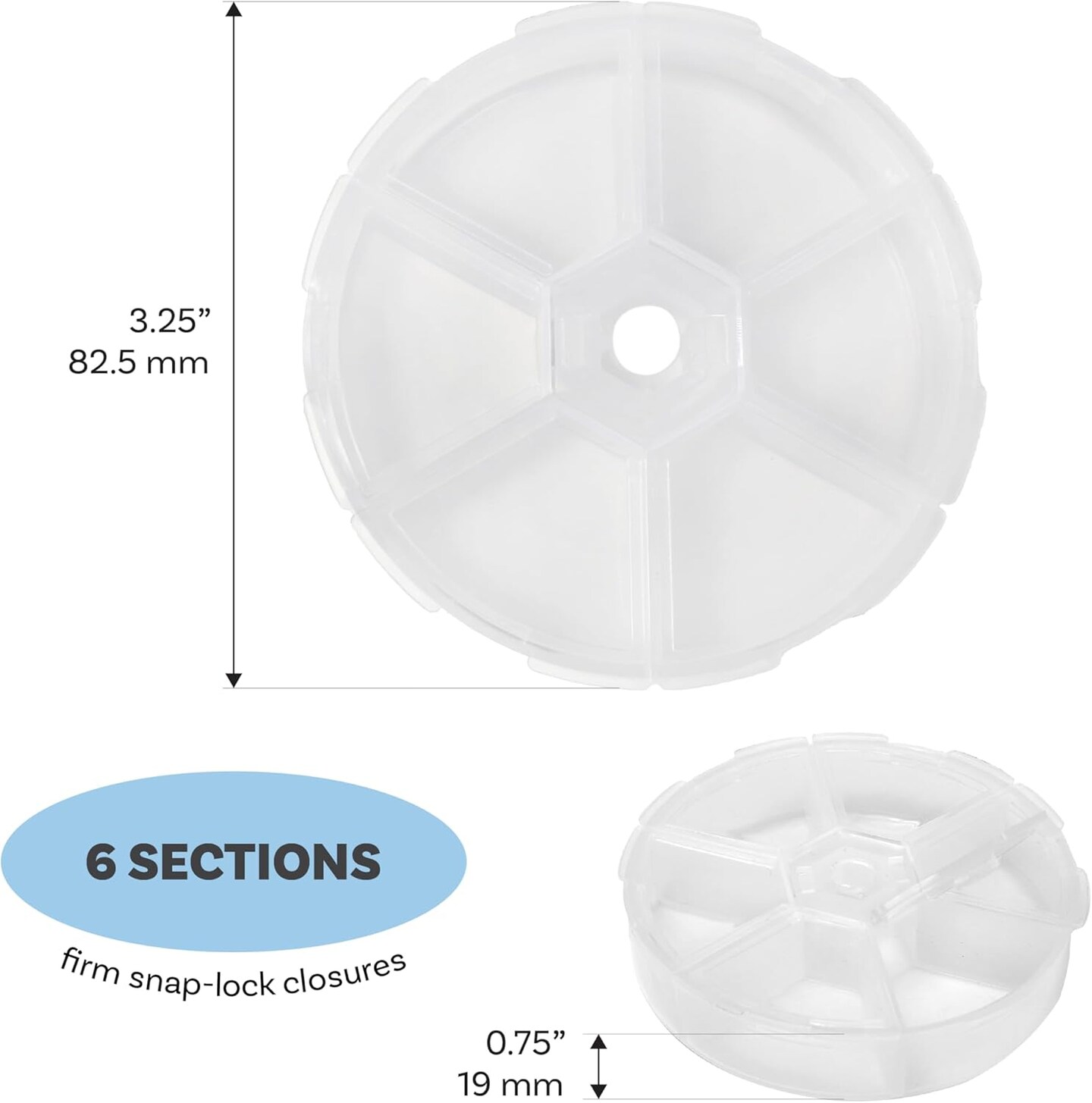 Round Plastic Organizer Box - 3.25" x 0.75" with 6 Snap-Lock Sections, Compact Storage for Beads, Findings, Jewelry Supplies & Small Craft Items