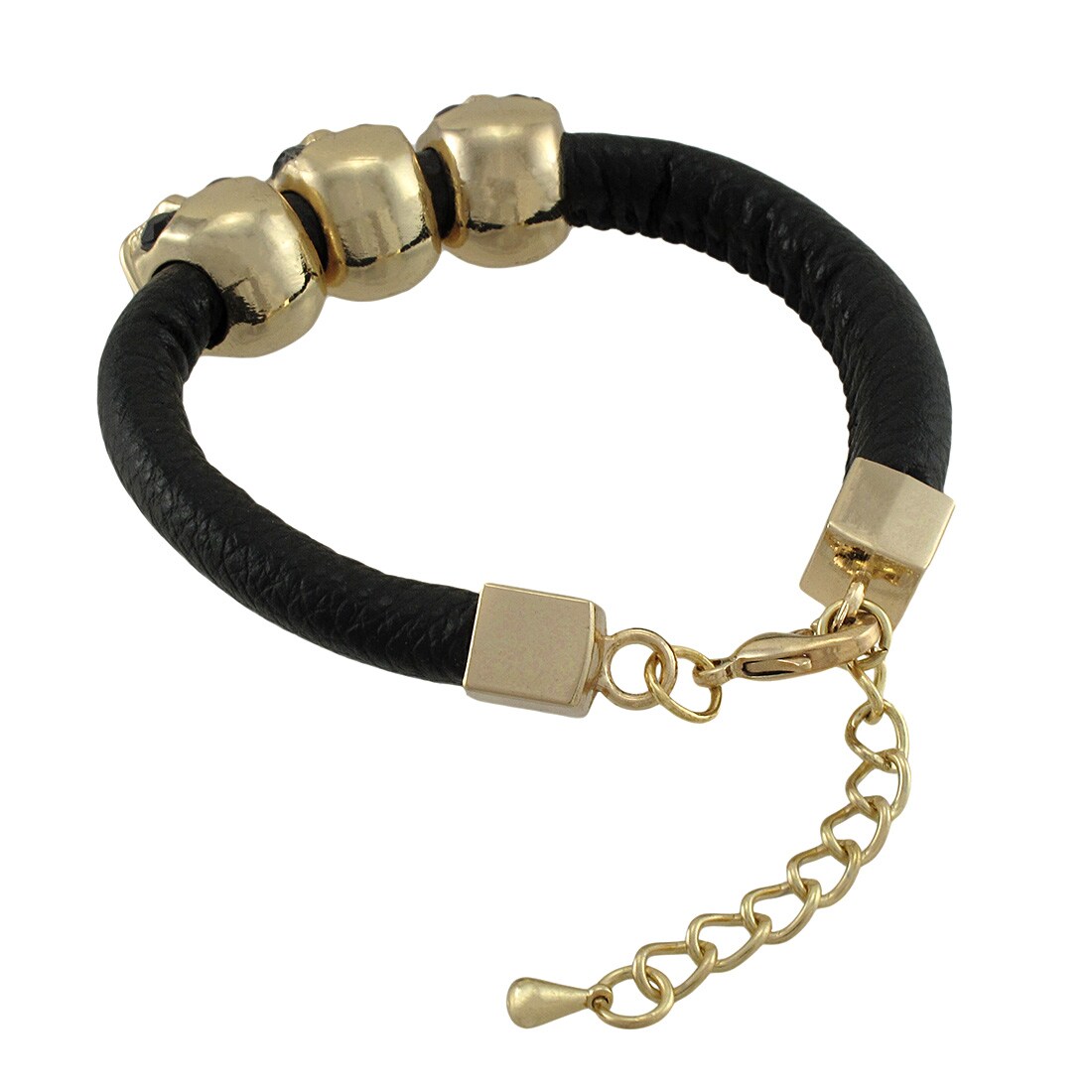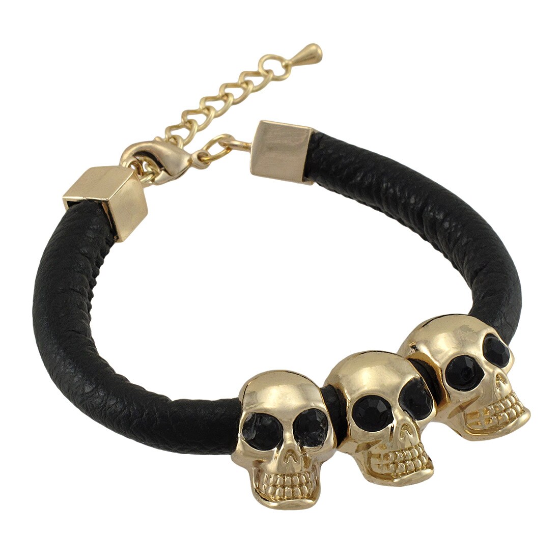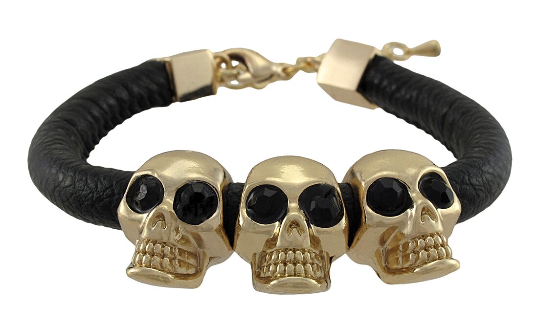 Rounded Vinyl Bracelet with Gold Tone Skull Beads