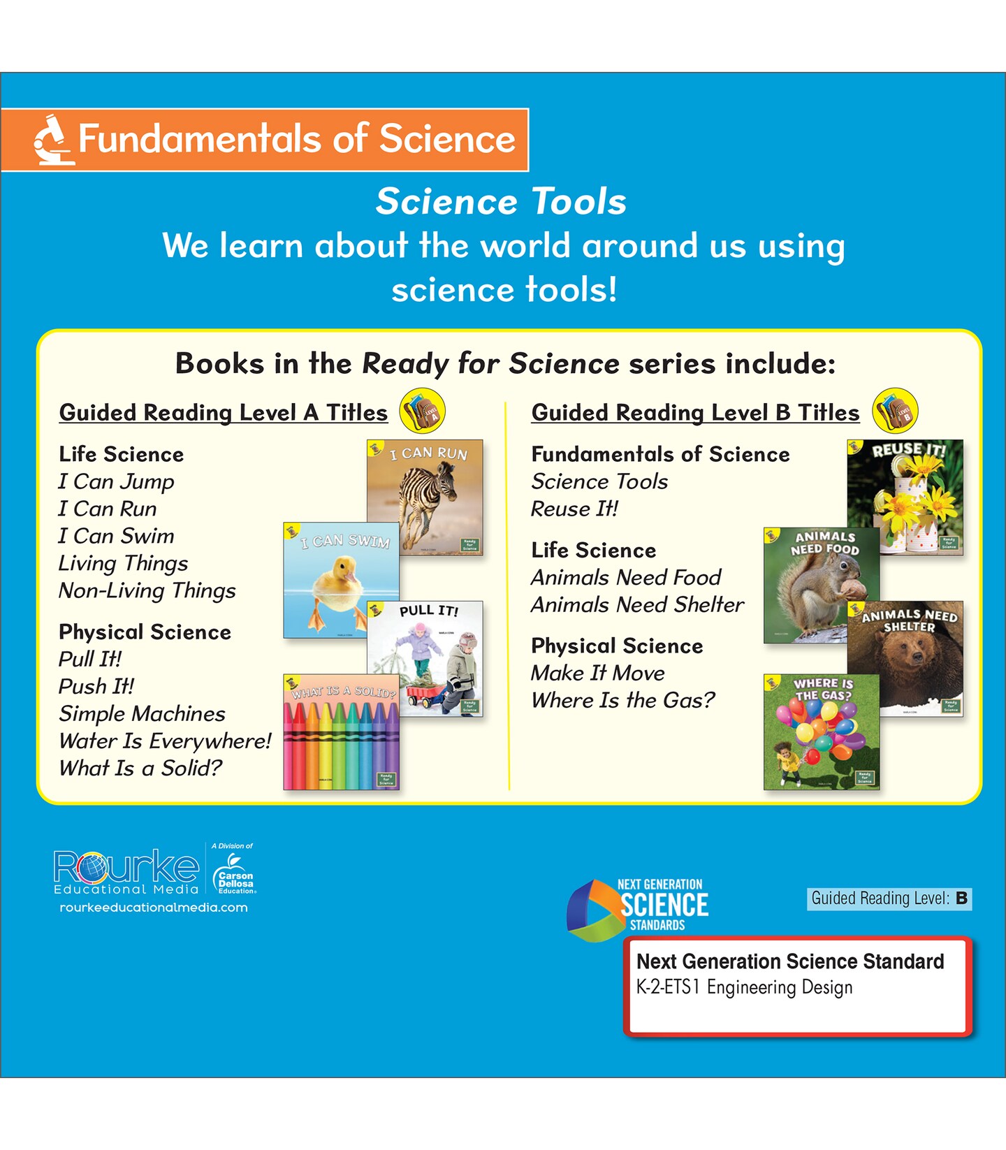 Rourke Educational Media Ready for Science: Science Tools—Level B Children's Book About Fascinating Scientific Concepts and Tools Used for Experiments, PreK-Grade 2 (16 pgs) Reader