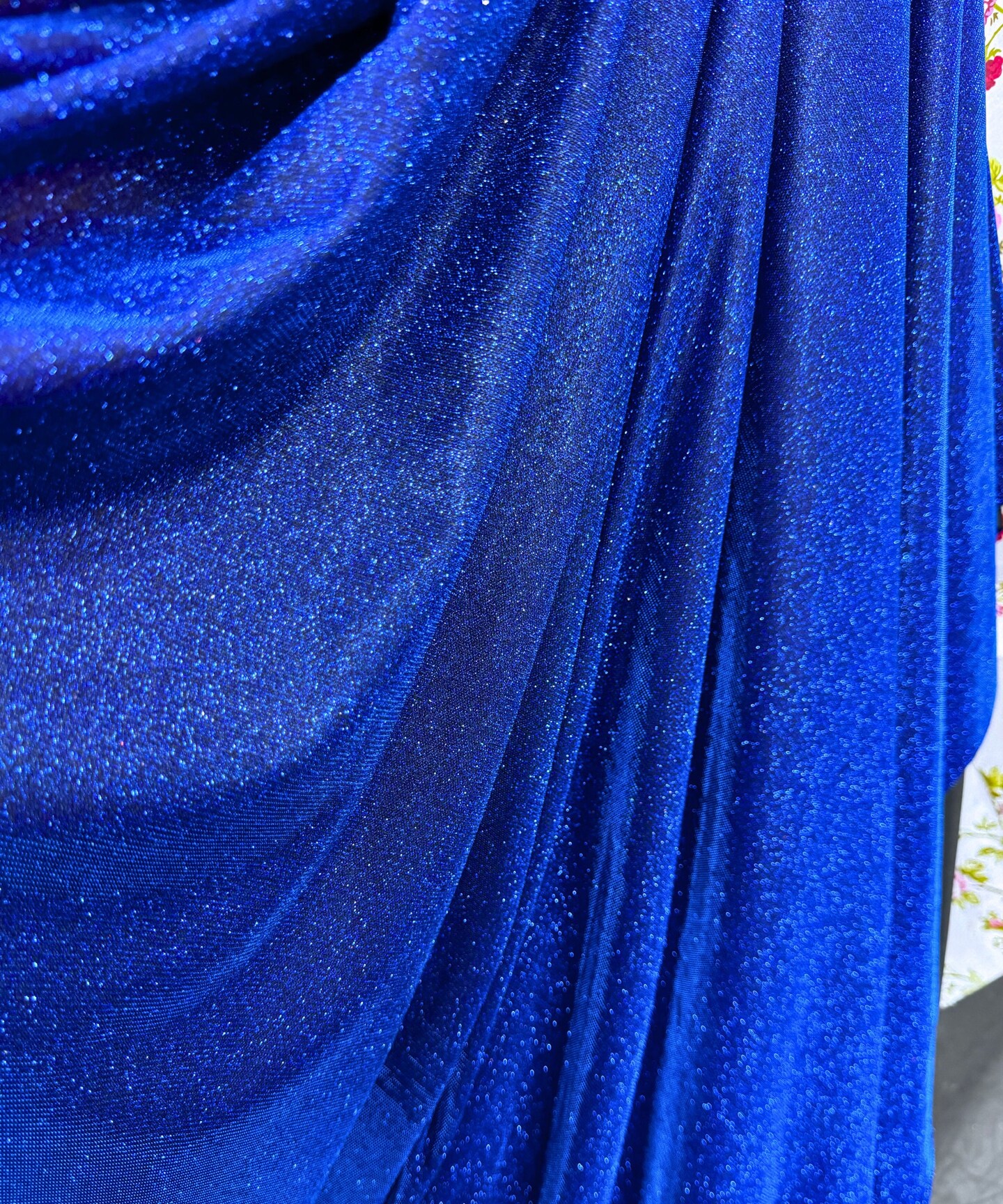 Royal Blue Glitter Lurex Knit Fabric by the Yard, 60" Wide Sparkle Metallic Stretch Fabric for Costumes, Gowns, Dancewear