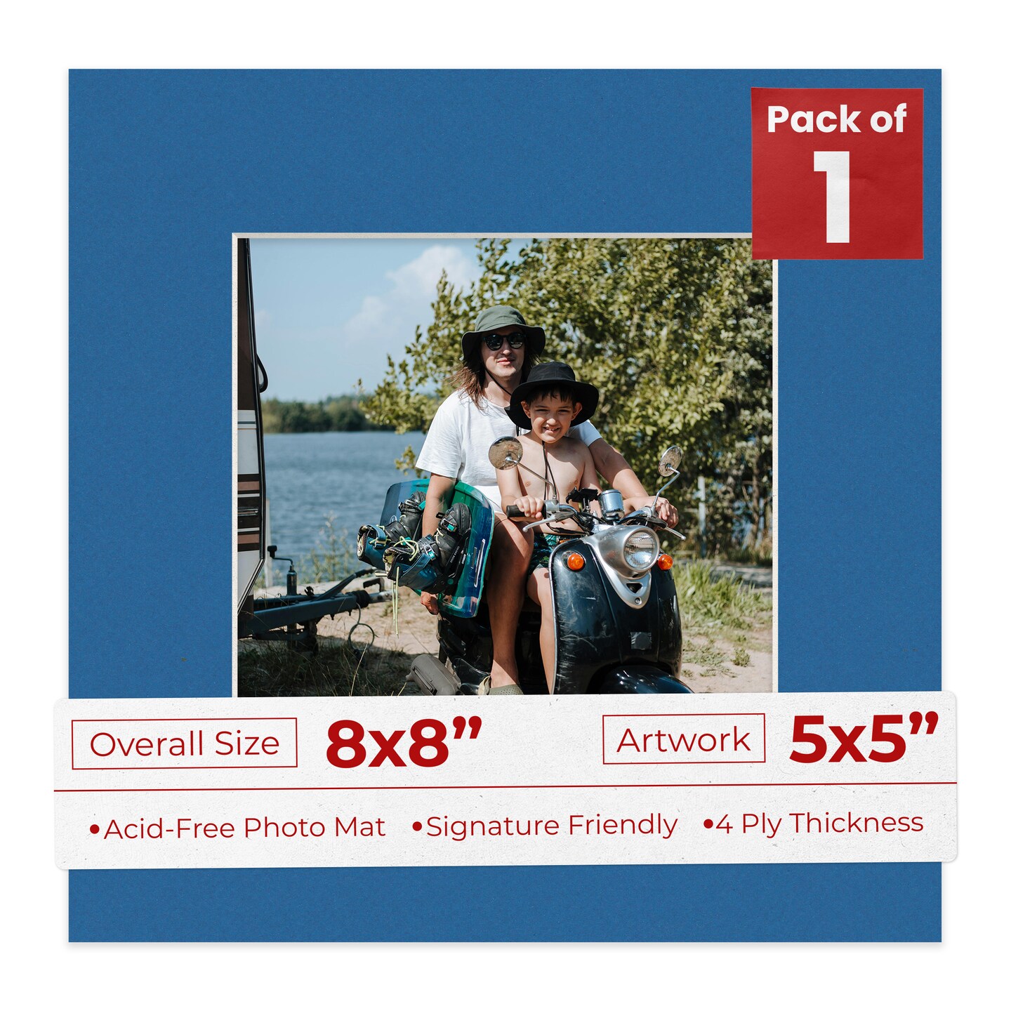 Royal Blue Mat Board for 8x8 Frames - Fits 5x5 Photos