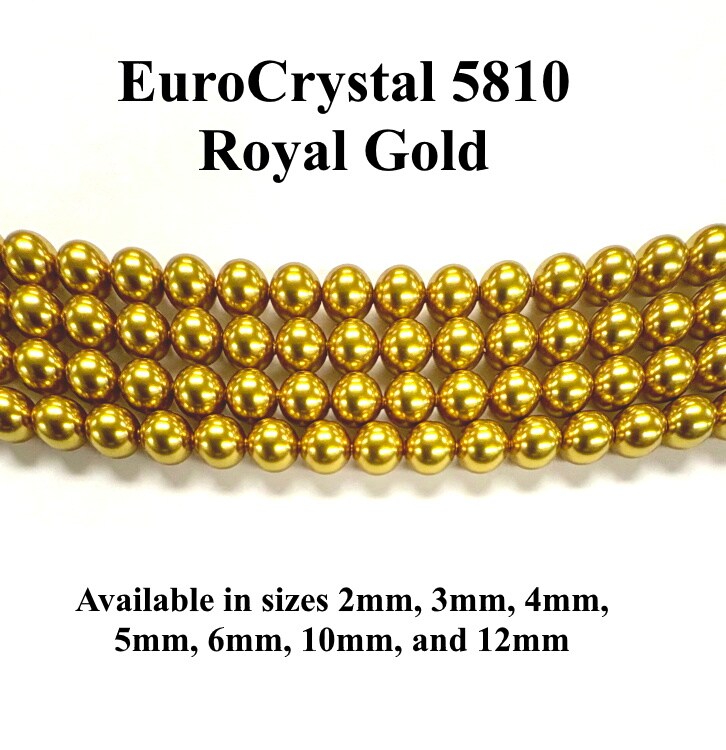 Royal Gold EuroCrystal 5810 Round Pearls - 2mm, 3mm, 4mm, 5mm, 6mm, 8mm, 10mm, and 12mm - Strands - Made in Austria