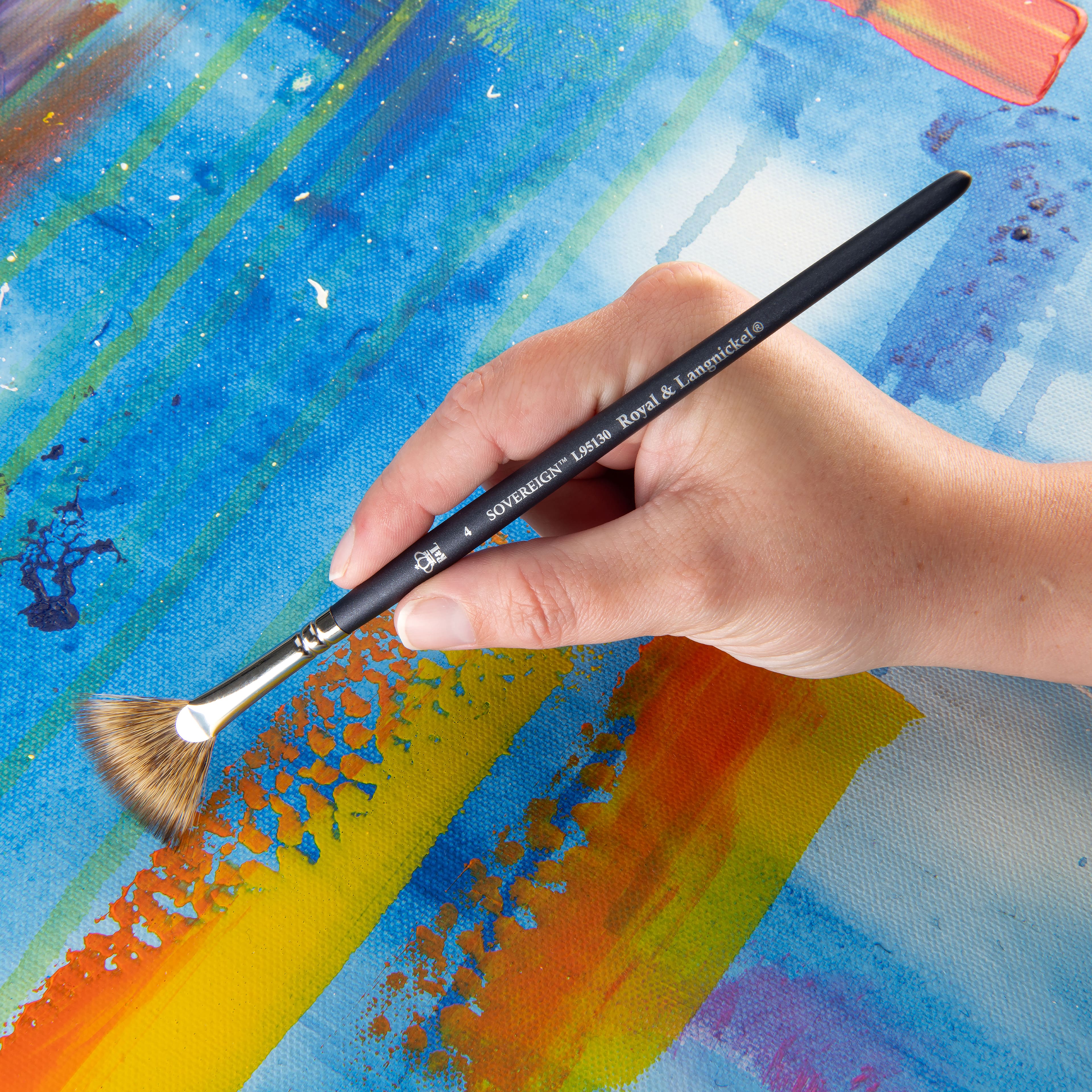 Royal & Langnickel® Sovereign™ Synthetic Long Handle Fan Blender Brush, Size 4