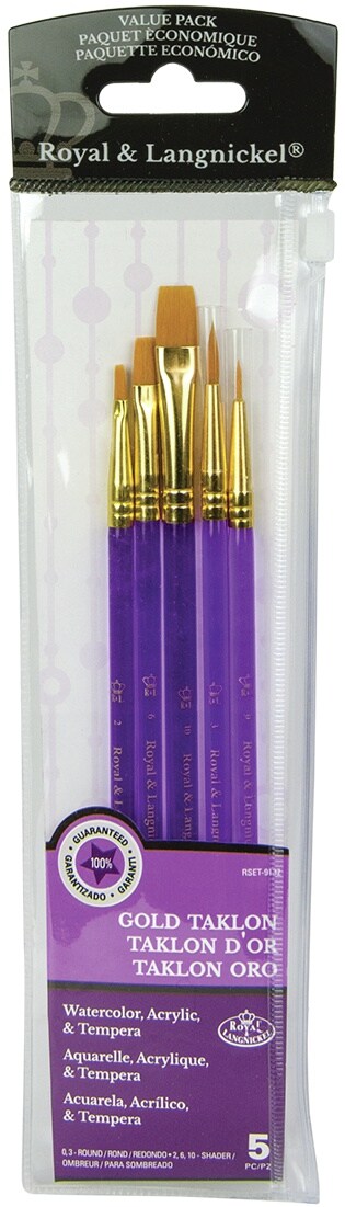 Royal & Langnickel(R) Gold Taklon Value Pack Brush Set-5/Pkg
