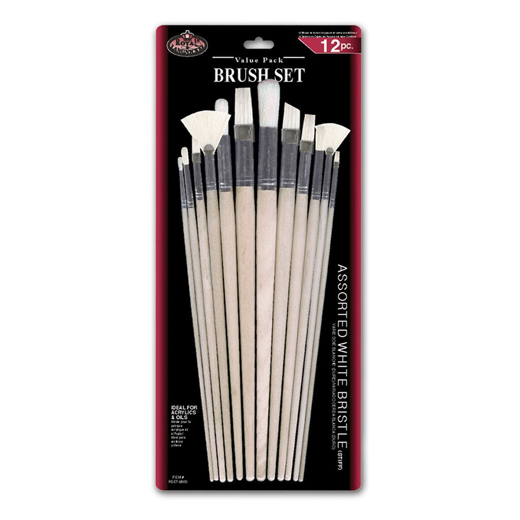 RSET-9600 | 12pc White Bristle Long Handle Variety Brush Set