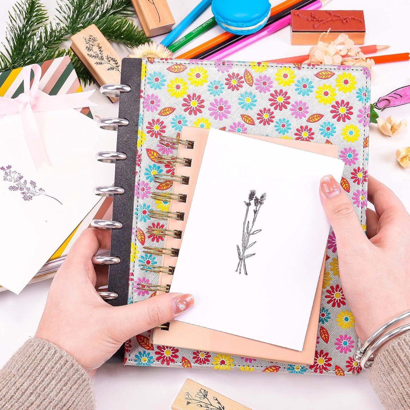 Rubber Stamps for Crafting, 8 Pcs Mounted Wood Stamps Vintage Plant Flower Decorative Ink Stamp Set