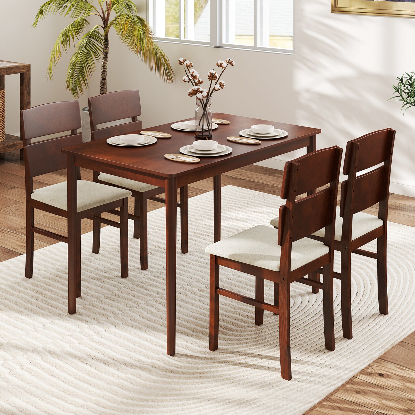 Rubber Wood Polyester Fabric 5-Piece Dining Set with Rectangular Table