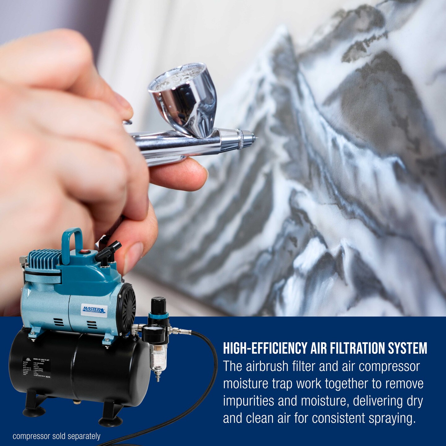 rue Diaphragm Airbrush Pressure Regulator with Gauge & Water Moisture Trap – Filter, Air Compressor Water Trap for Clean, Moisture-Free Airflow